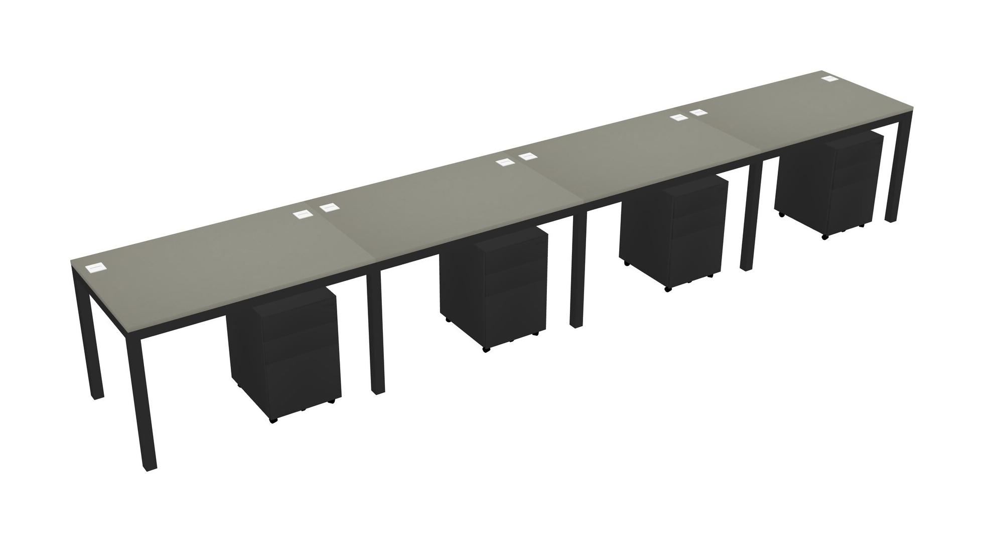 Grey Shadows Rectangular Office Desk With Metal Mobile Drawers For 4 Persons