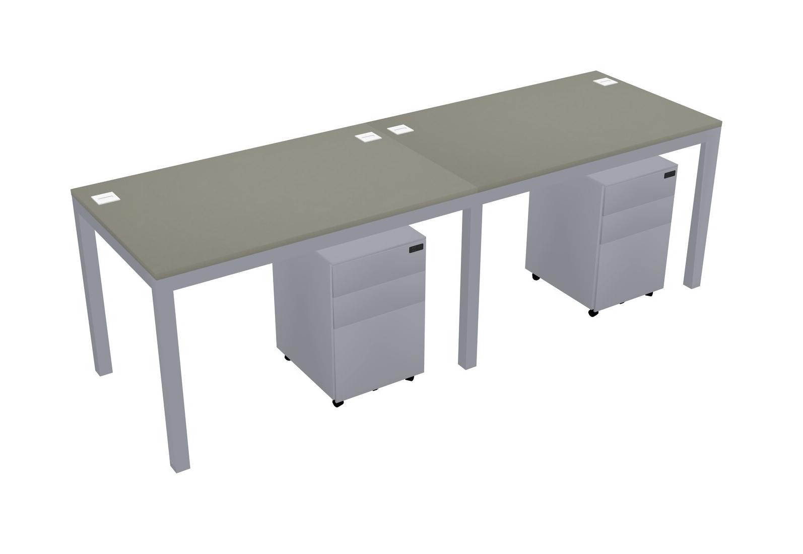 Grey Shadows Rectangular Office Desk With Metal Mobile Drawers For 2 Persons