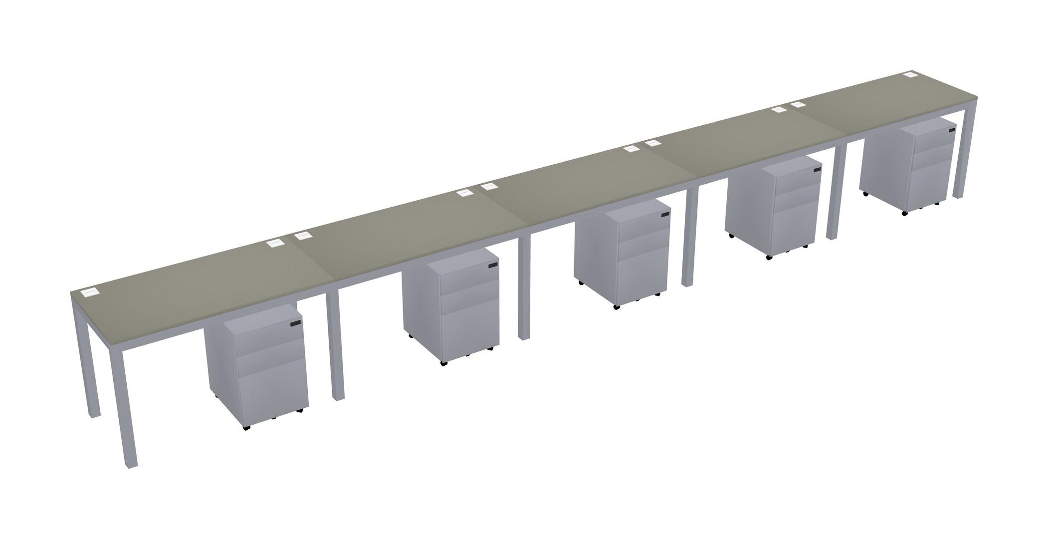 Grey Shadows Rectangular Office Desk With Metal Mobile Drawers For 5 Persons