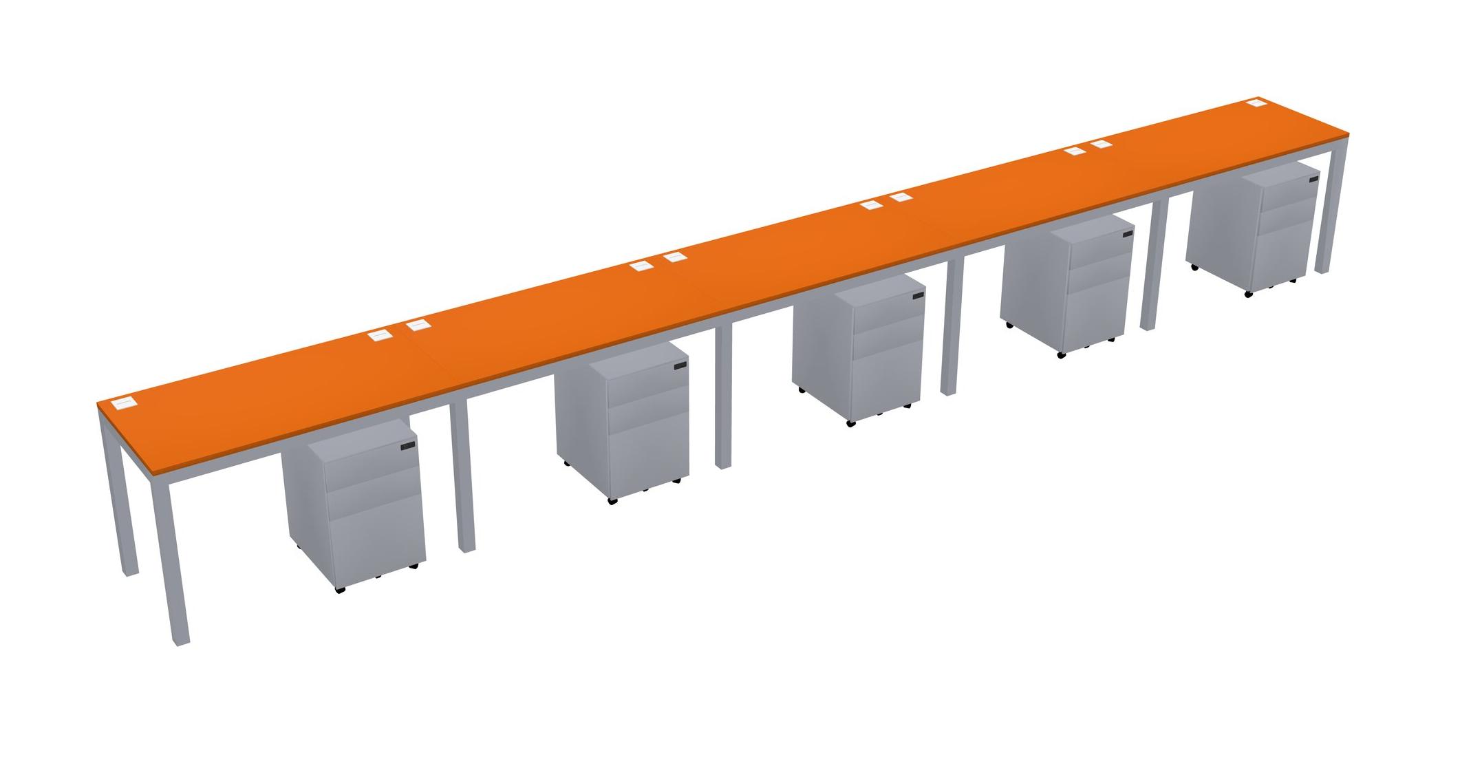 Orange Rectangular Office Desk With Metal Mobile Drawers For 5 Persons