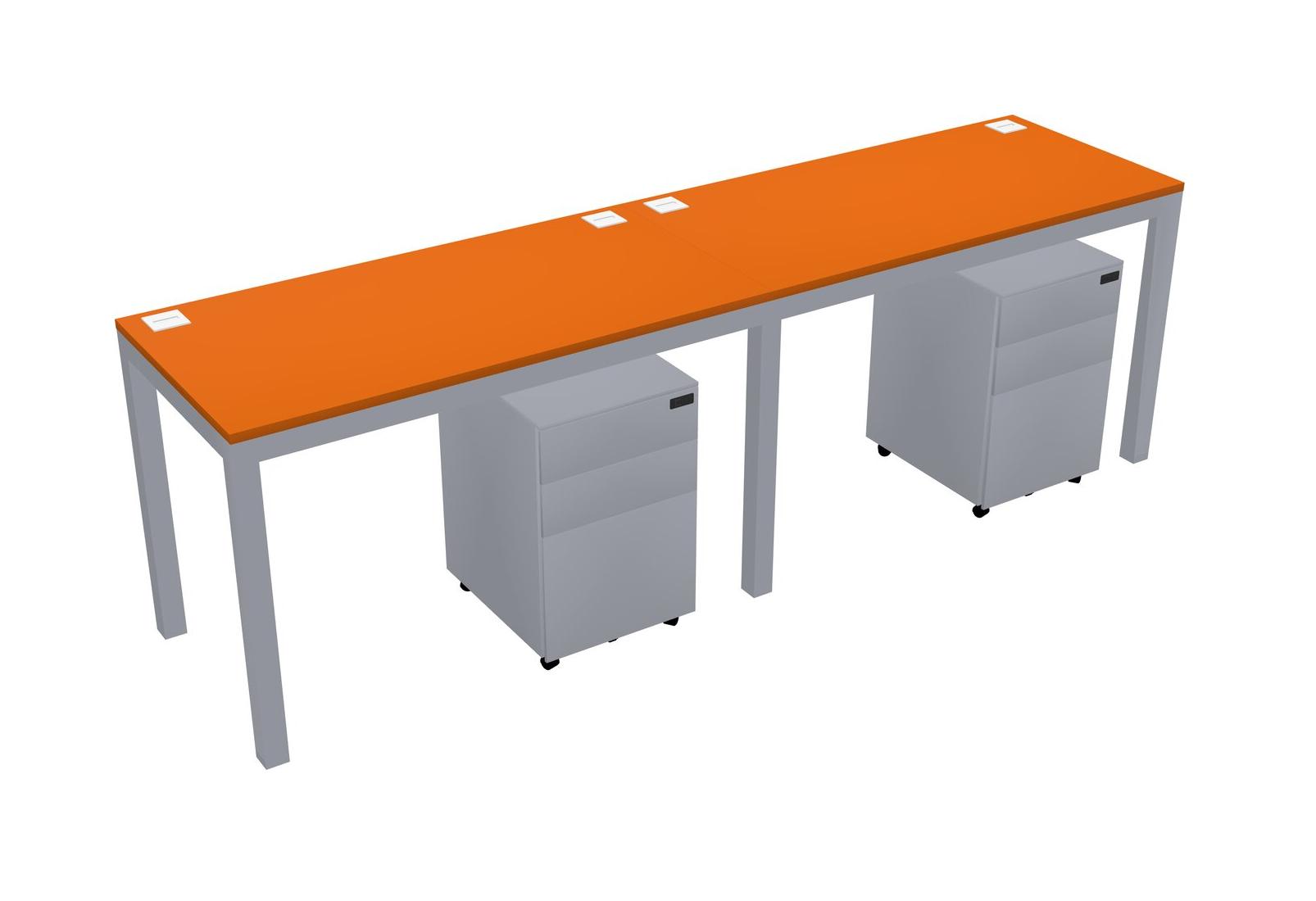 Orange Rectangular Office Desk With Metal Mobile Drawers For 2 Persons