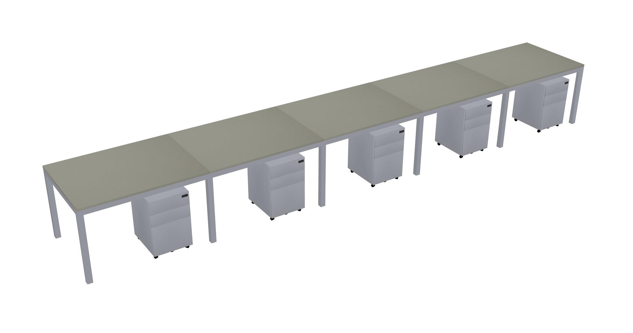 Grey Shadows Rectangular Office Desk With Metal Mobile Drawers For 5 Persons
