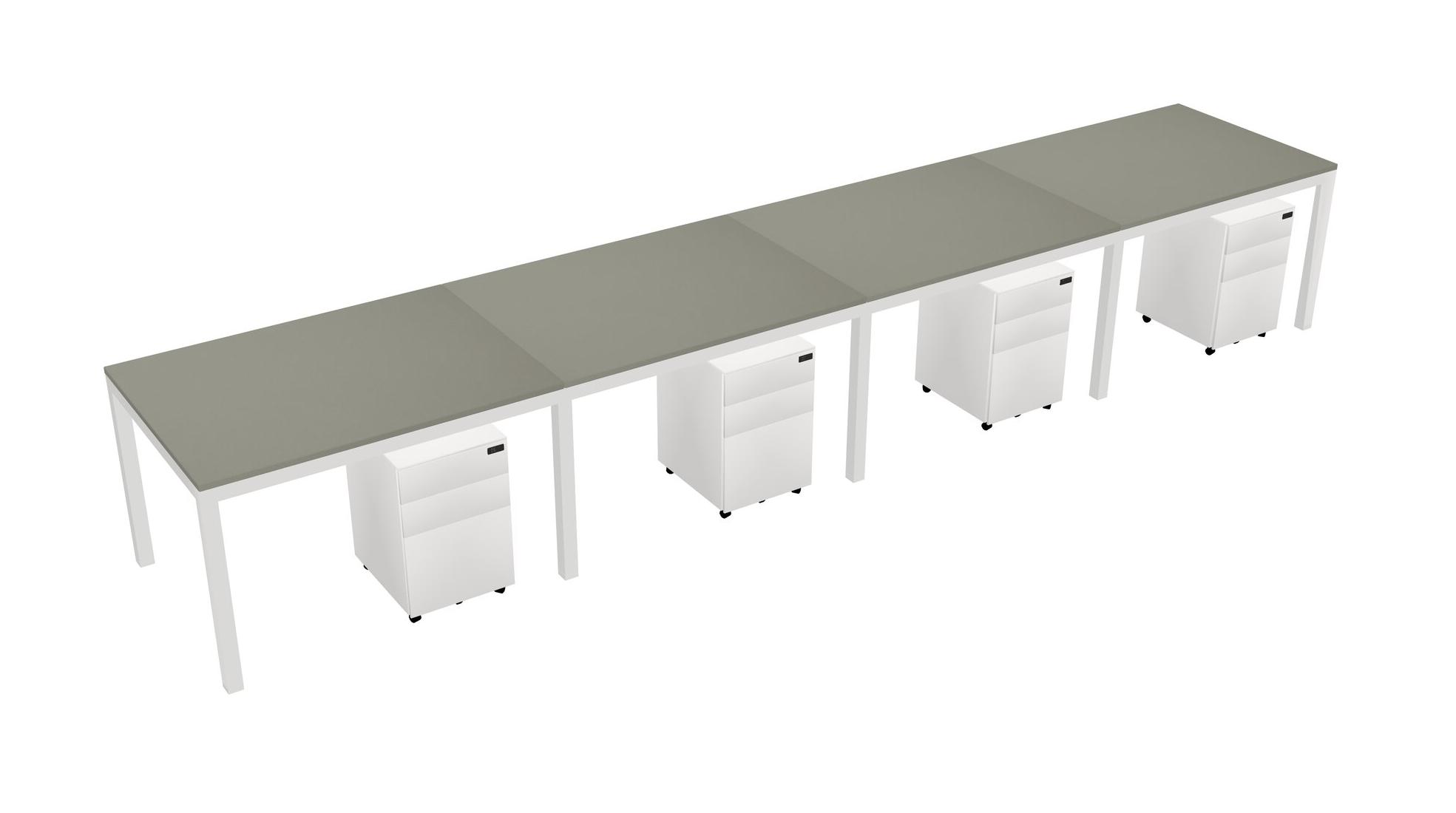 Grey Shadows Rectangular Office Desk With Metal Mobile Drawers For 4 Persons
