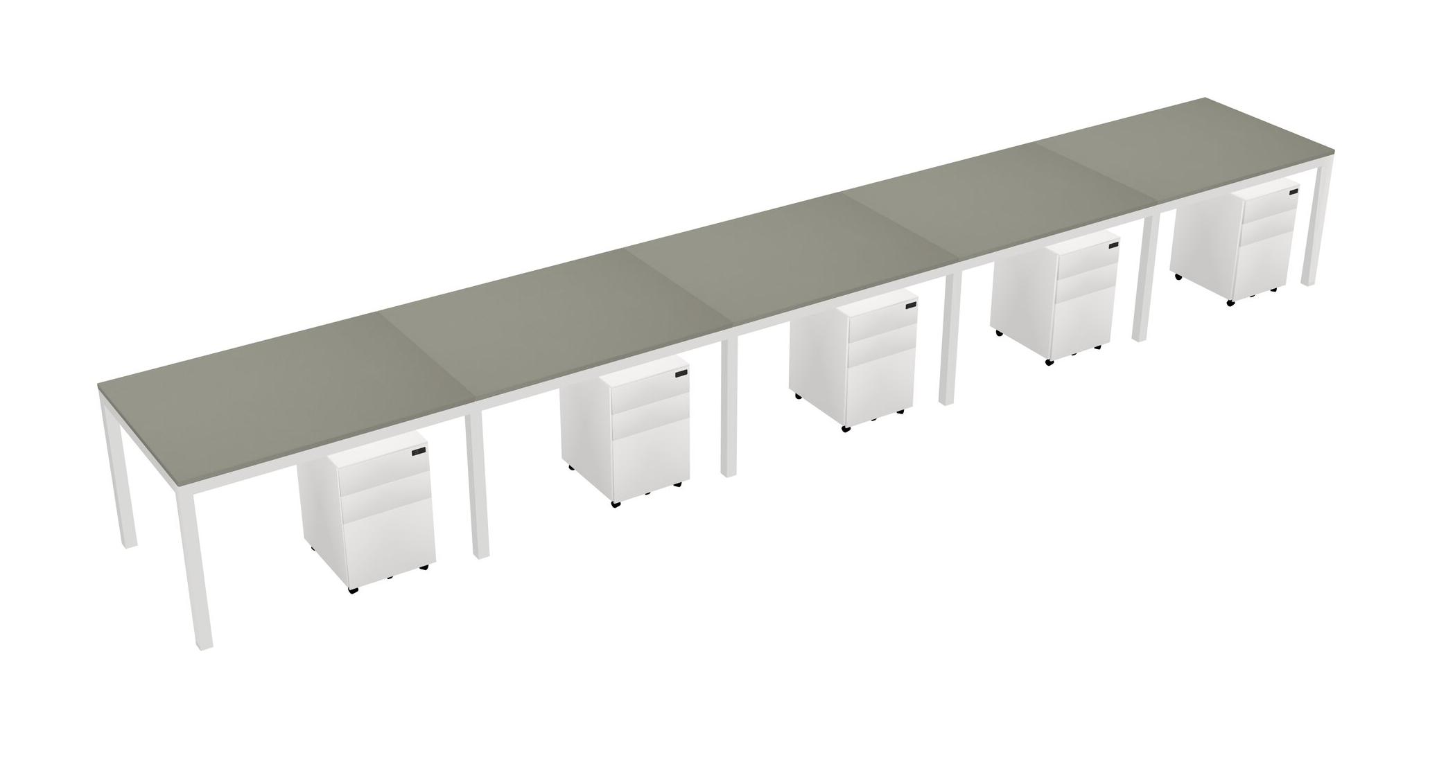 Grey Shadows Rectangular Office Desk With Metal Mobile Drawers For 5 Persons