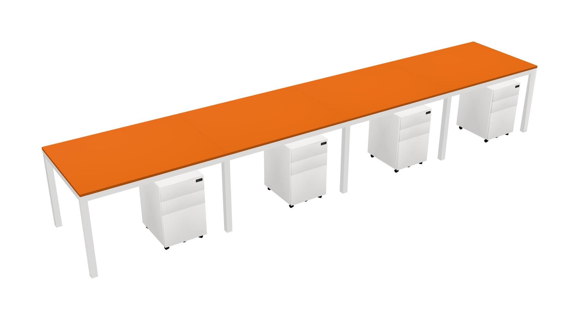 Orange Rectangular Office Desk With Metal Mobile Drawers For 4 Persons