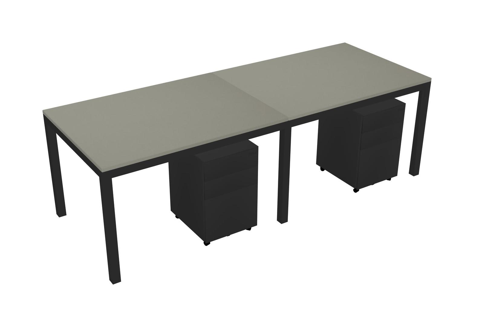 Grey Shadows Rectangular Office Desk With Metal Mobile Drawers For 2 Persons