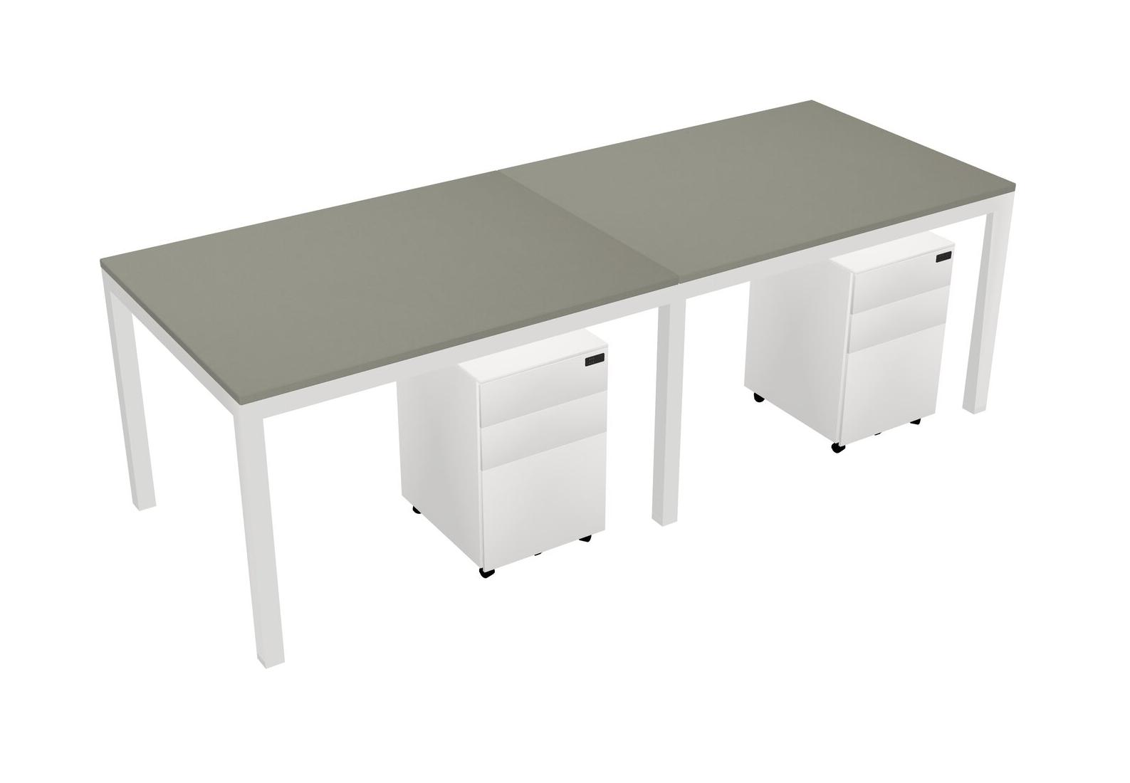 Grey Shadows Rectangular Office Desk With Metal Mobile Drawers For 2 Persons