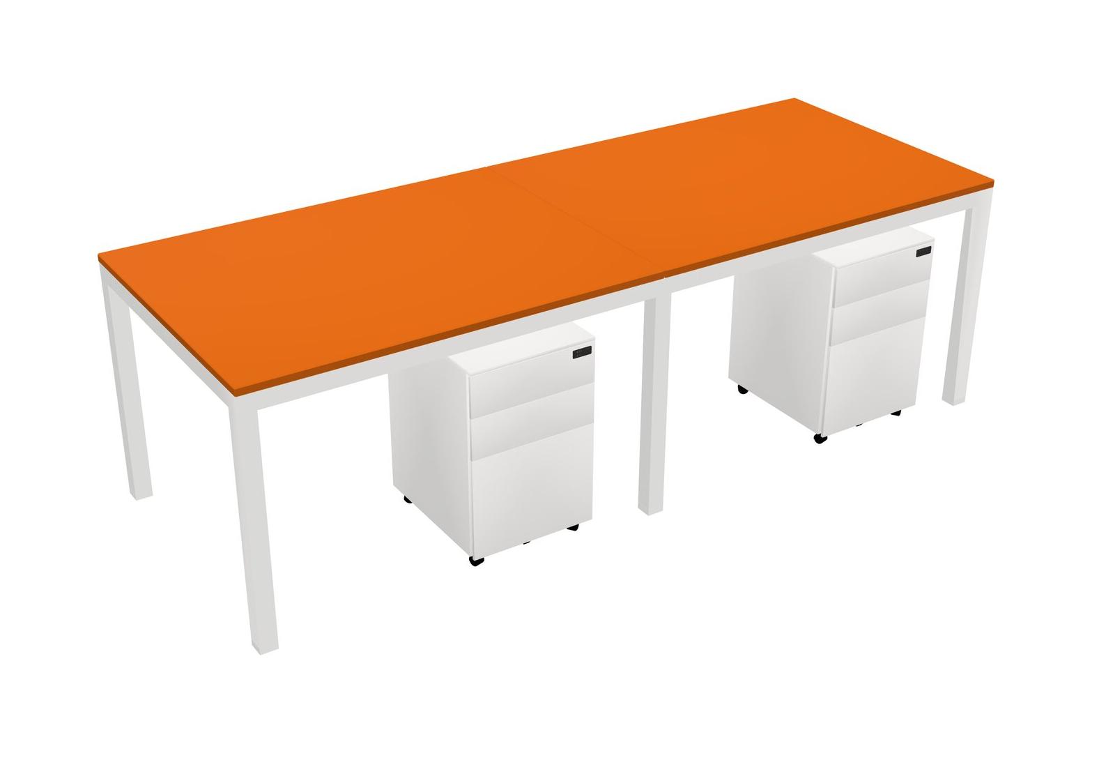 Orange Rectangular Office Desk With Metal Mobile Drawers For 2 Persons