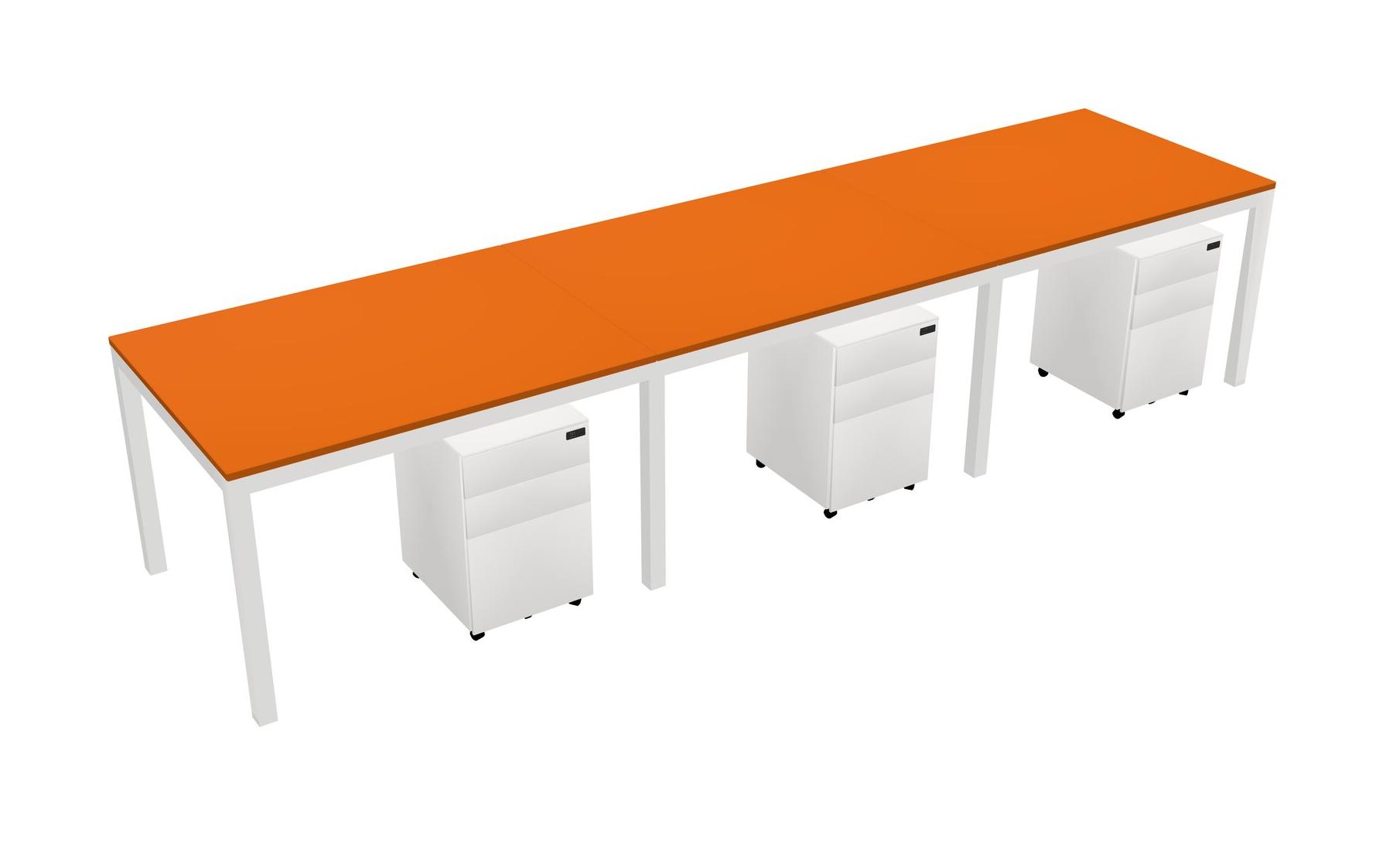 Orange Rectangular Office Desk With Metal Mobile Drawers For 3 Persons
