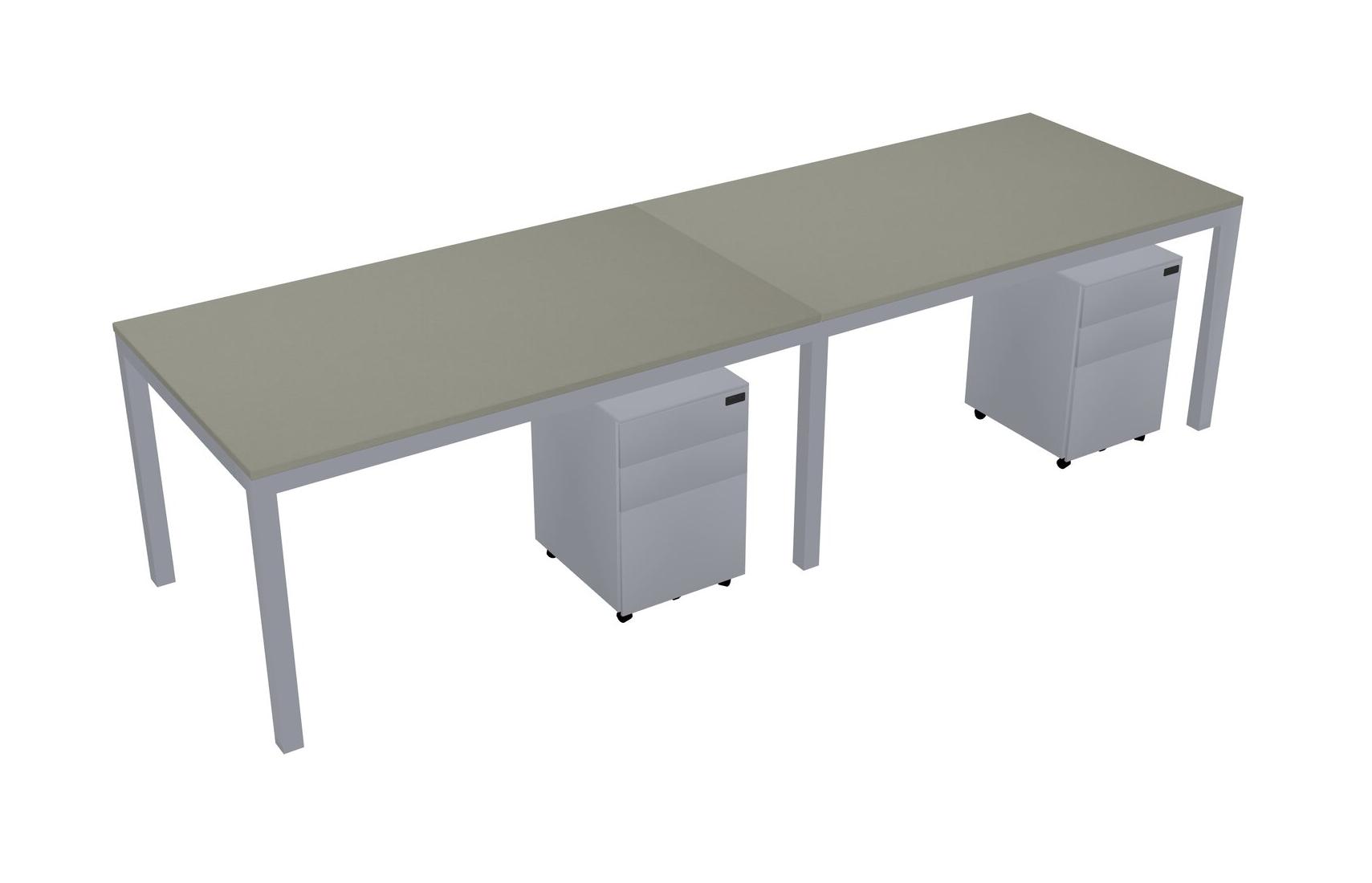 Grey Shadows Rectangular Office Desk With Metal Mobile Drawers For 2 Persons