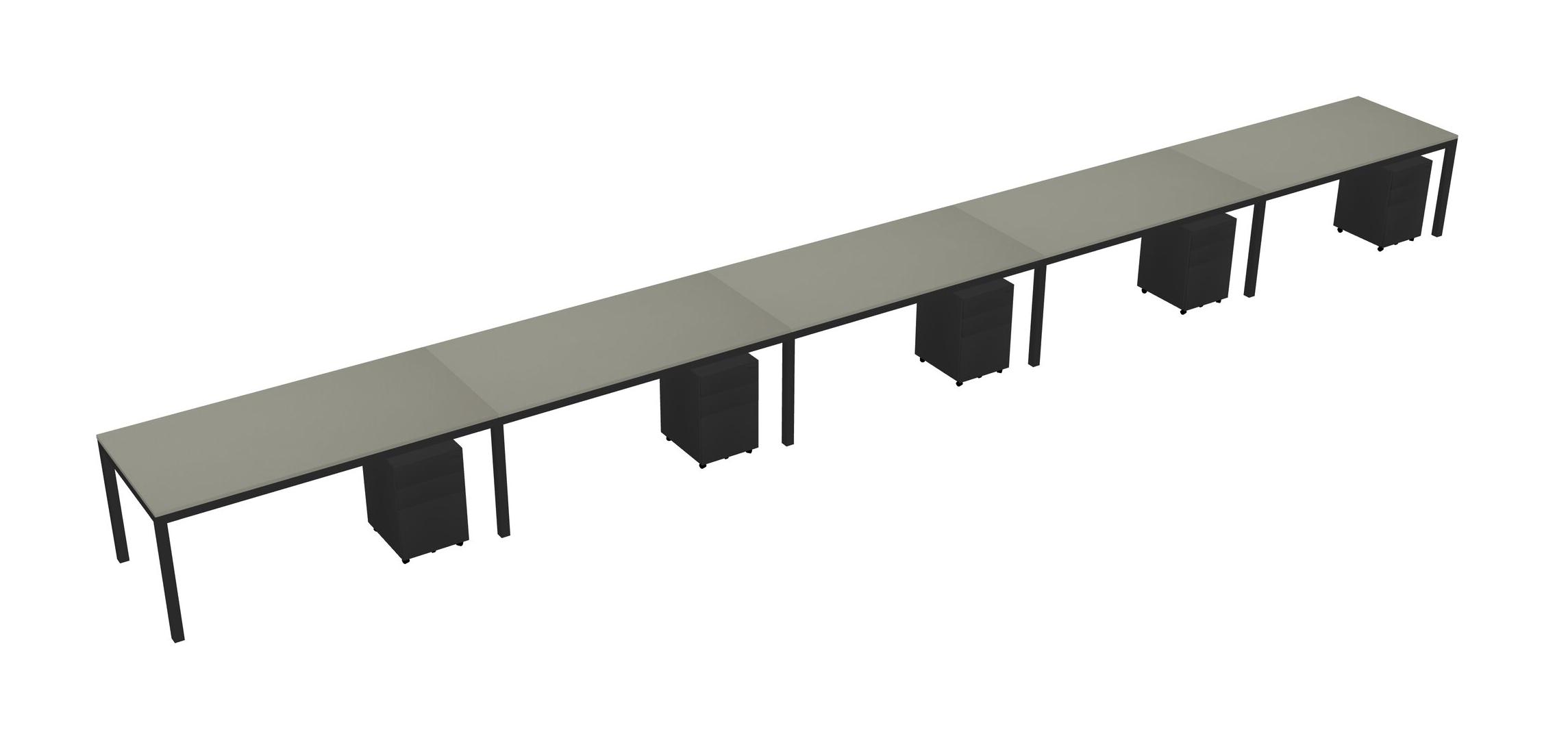 Grey Shadows Rectangular Office Desk With Metal Mobile Drawers For 5 Persons