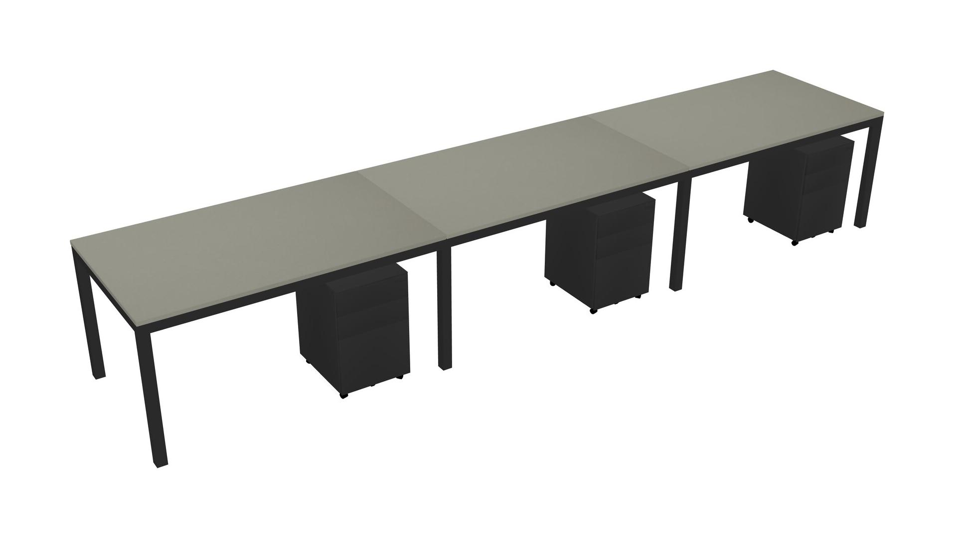 Grey Shadows Rectangular Office Desk With Metal Mobile Drawers For 3 Persons