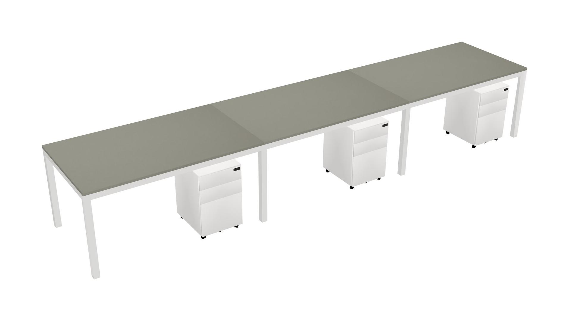 Grey Shadows Rectangular Office Desk With Metal Mobile Drawers For 3 Persons