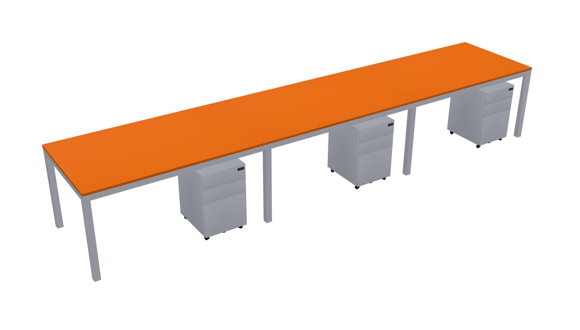 Orange Rectangular Office Desk With Metal Mobile Drawers For 3 Persons