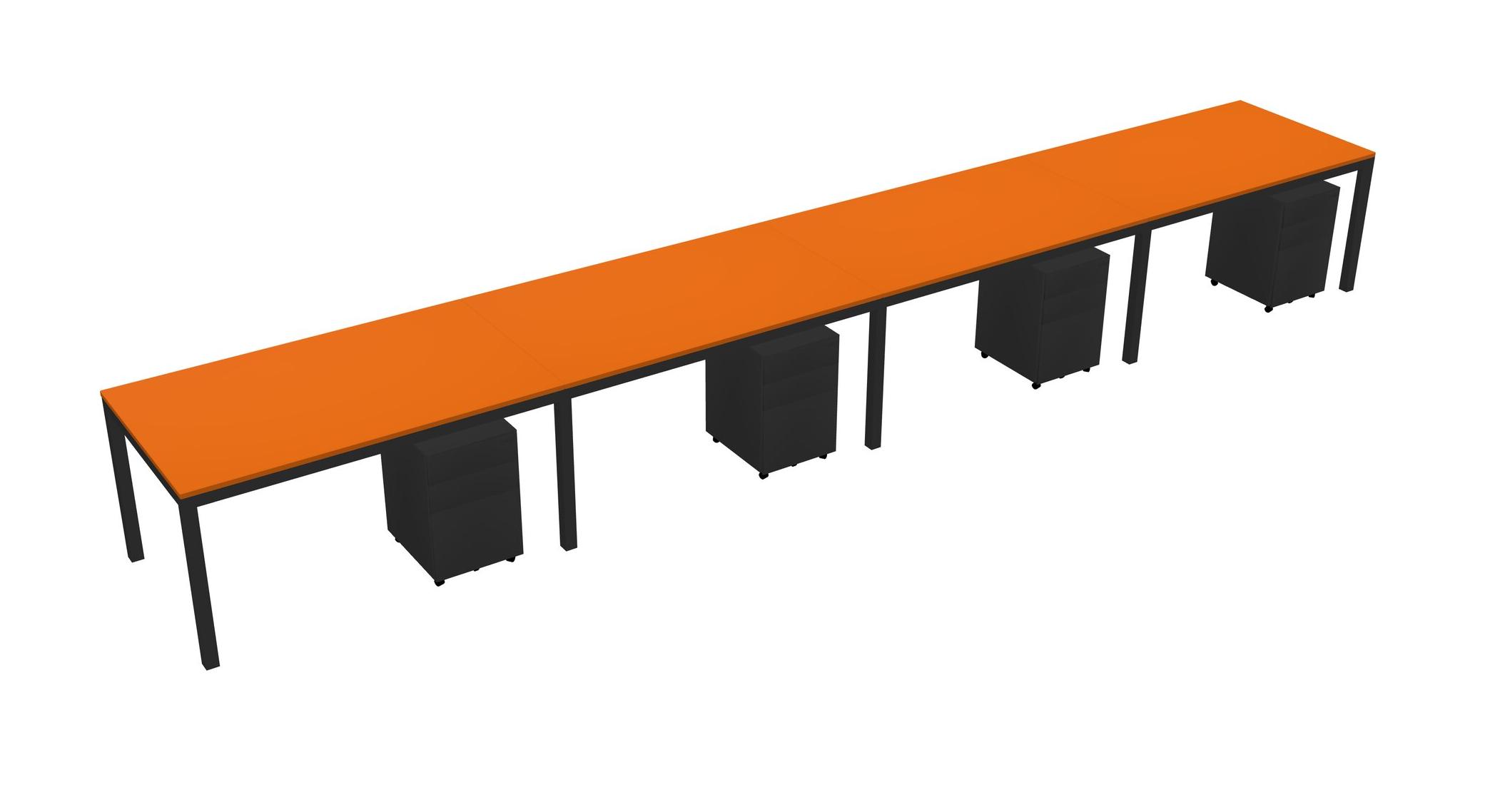 Orange Rectangular Office Desk With Metal Mobile Drawers For 4 Persons