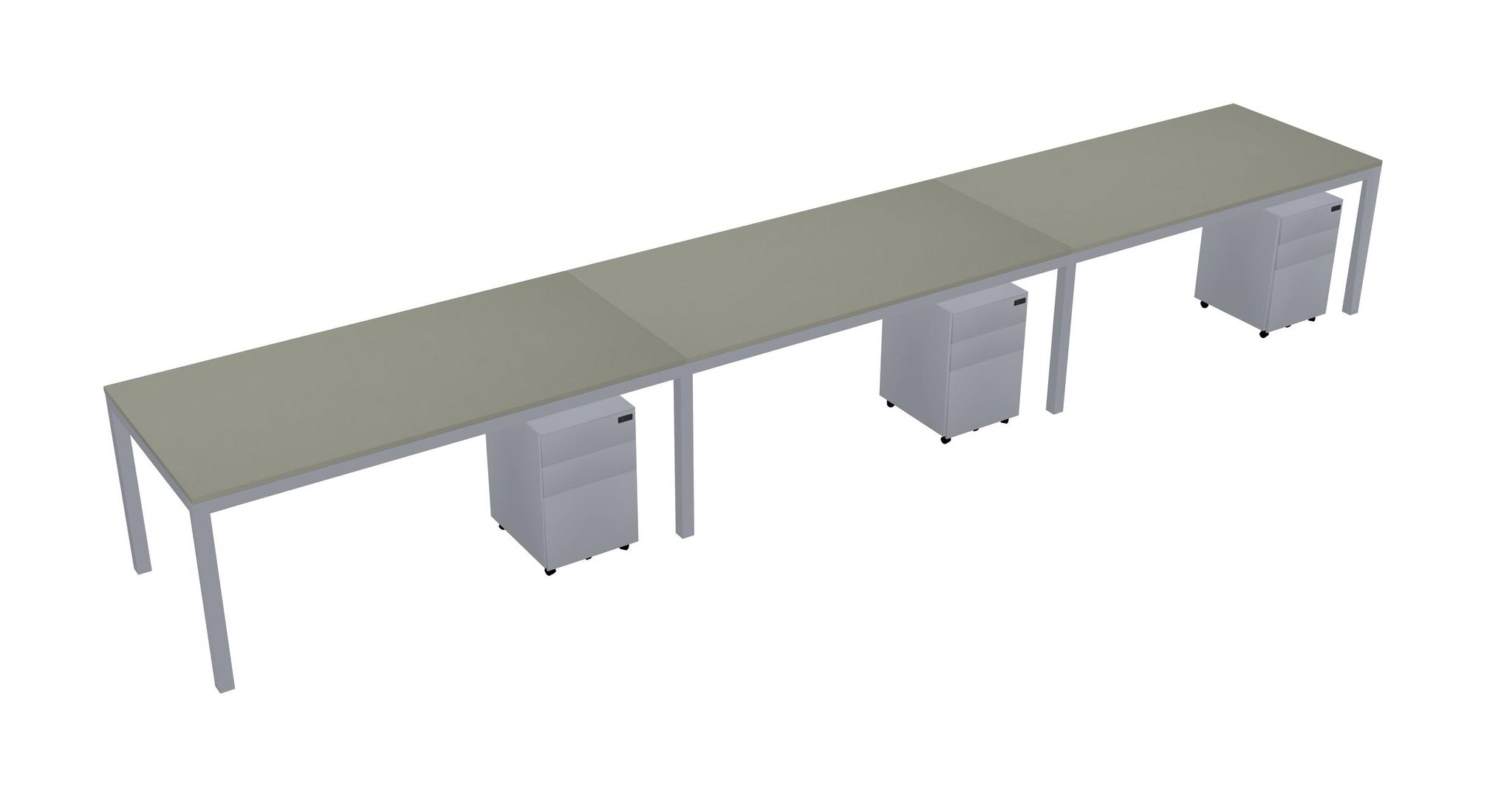Grey Shadows Rectangular Office Desk With Metal Mobile Drawers For 3 Persons