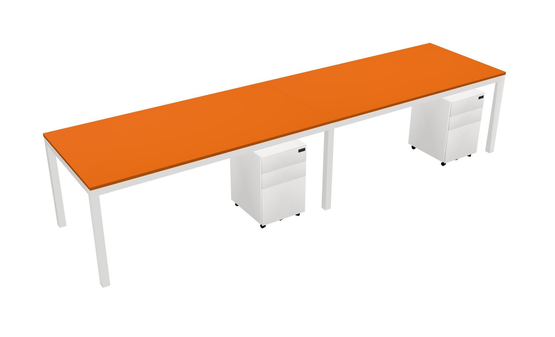 Orange Rectangular Office Desk With Metal Mobile Drawers For 2 Persons