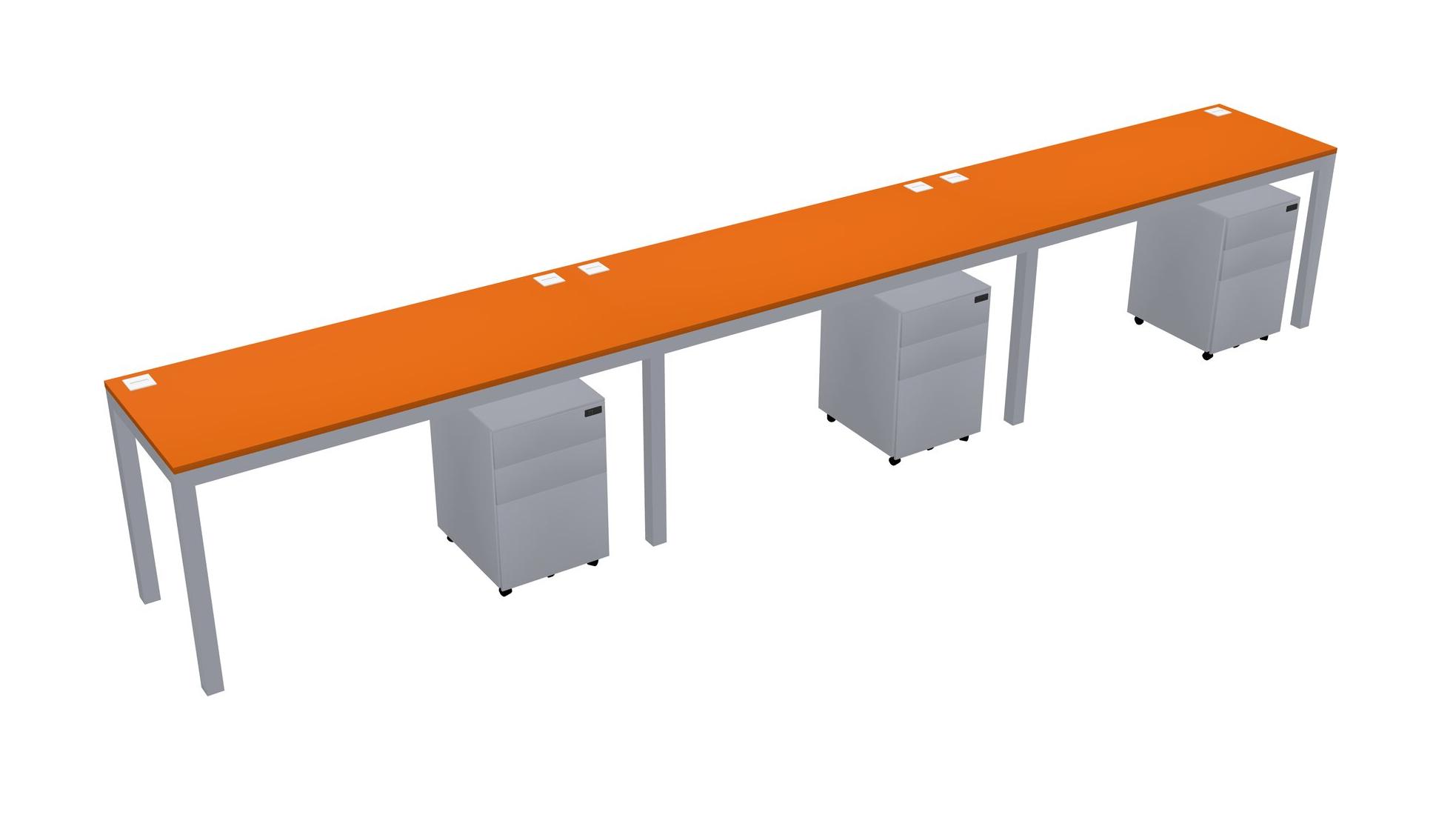 Orange Rectangular Office Desk With Metal Mobile Drawers For 3 Persons