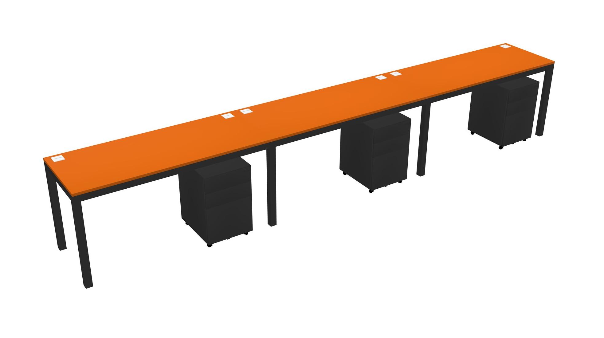 Orange Rectangular Office Desk With Metal Mobile Drawers For 3 Persons