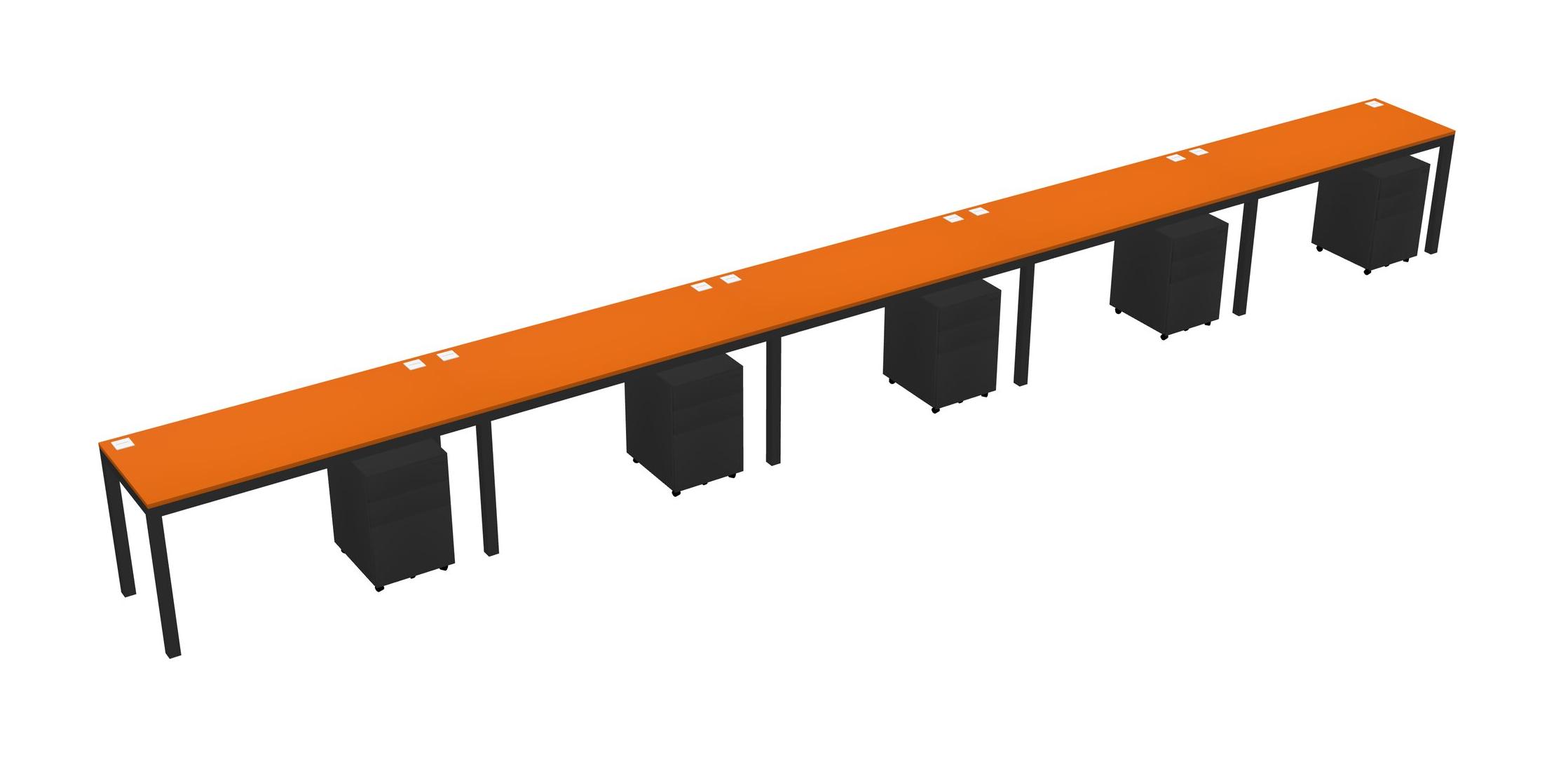 Orange Rectangular Office Desk With Metal Mobile Drawers For 5 Persons