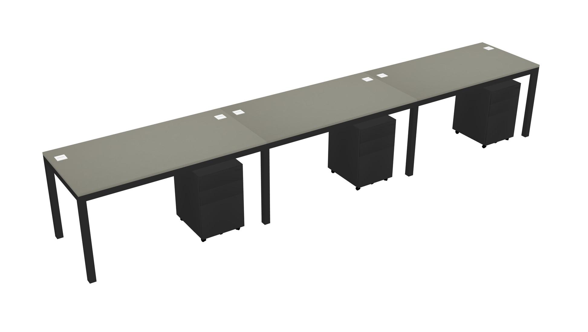 Grey Shadows Rectangular Office Desk With Metal Mobile Drawers For 3 Persons