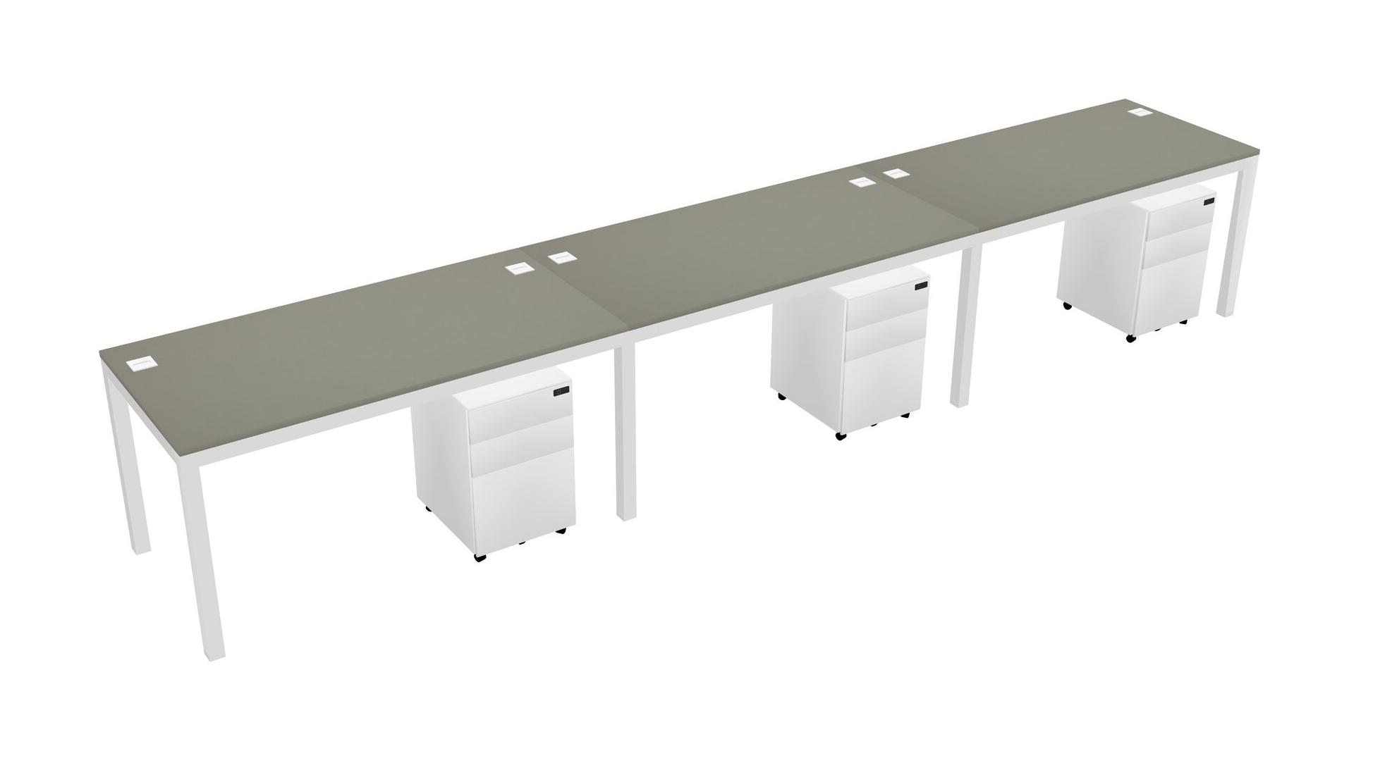 Grey Shadows Rectangular Office Desk With Metal Mobile Drawers For 3 Persons