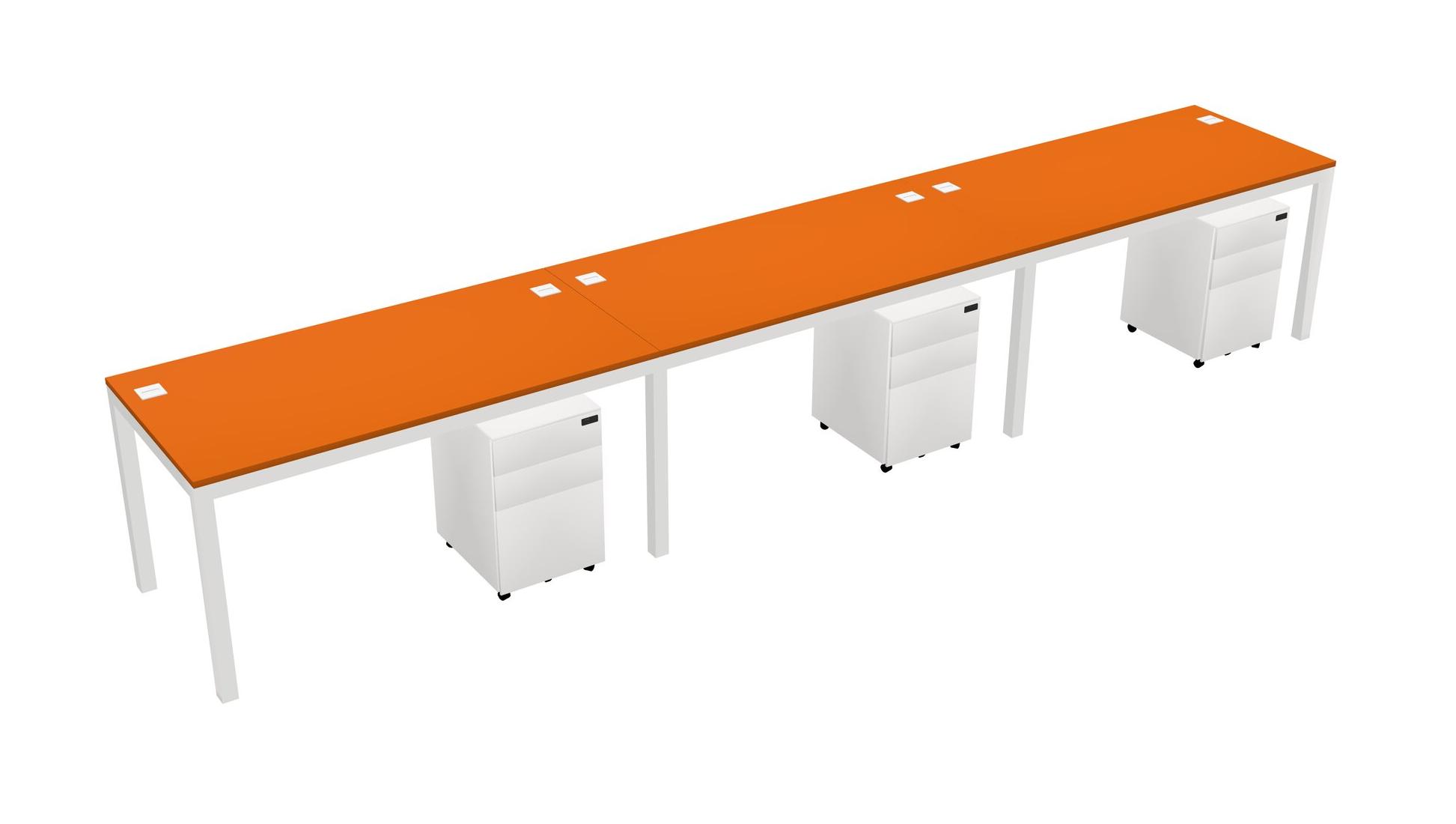Orange Rectangular Office Desk With Metal Mobile Drawers For 3 Persons