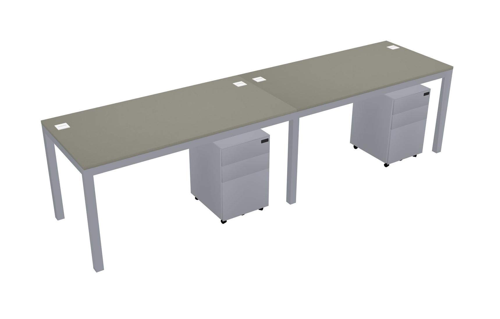 Grey Shadows Rectangular Office Desk With Metal Mobile Drawers For 2 Persons