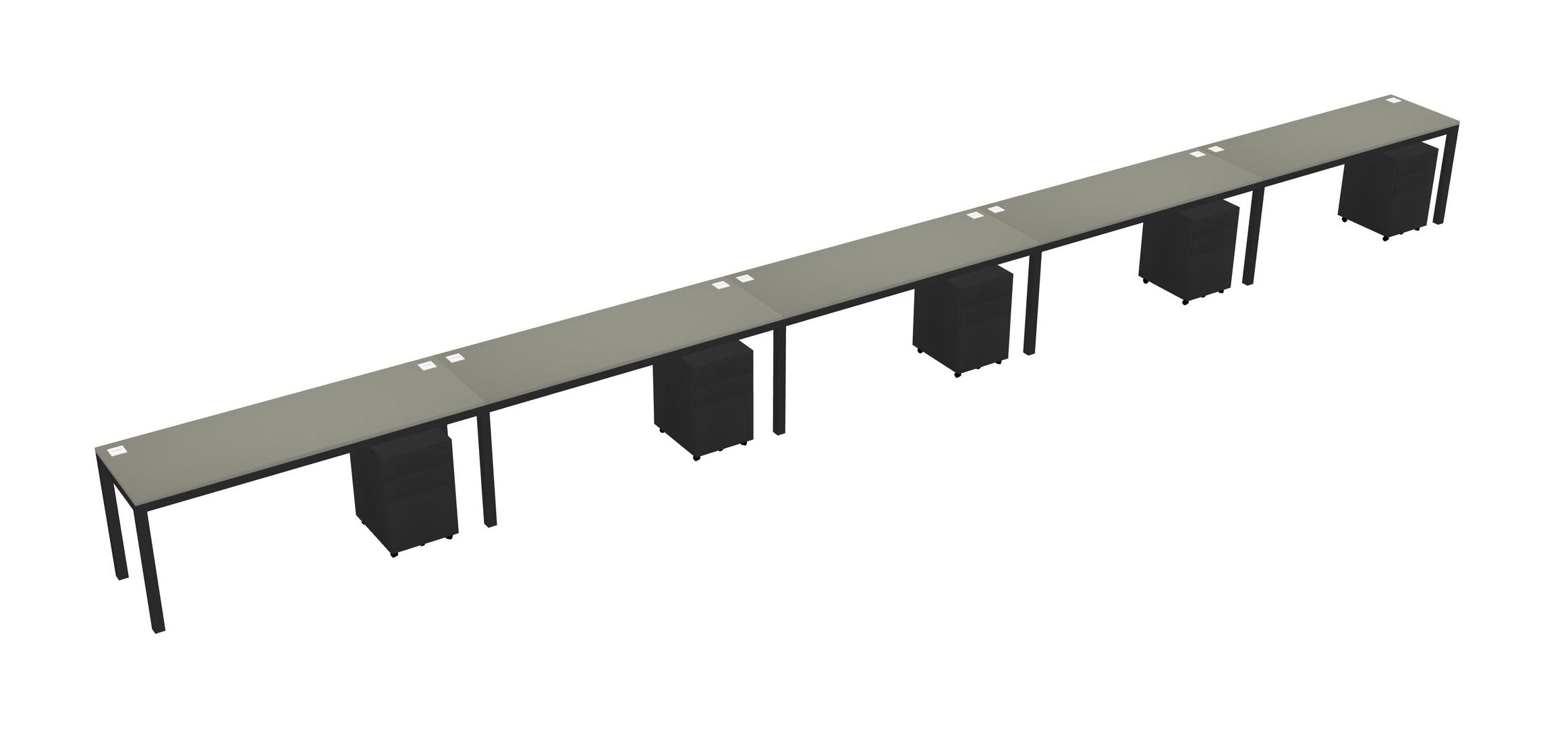 Grey Shadows Rectangular Office Desk With Metal Mobile Drawers For 5 Persons