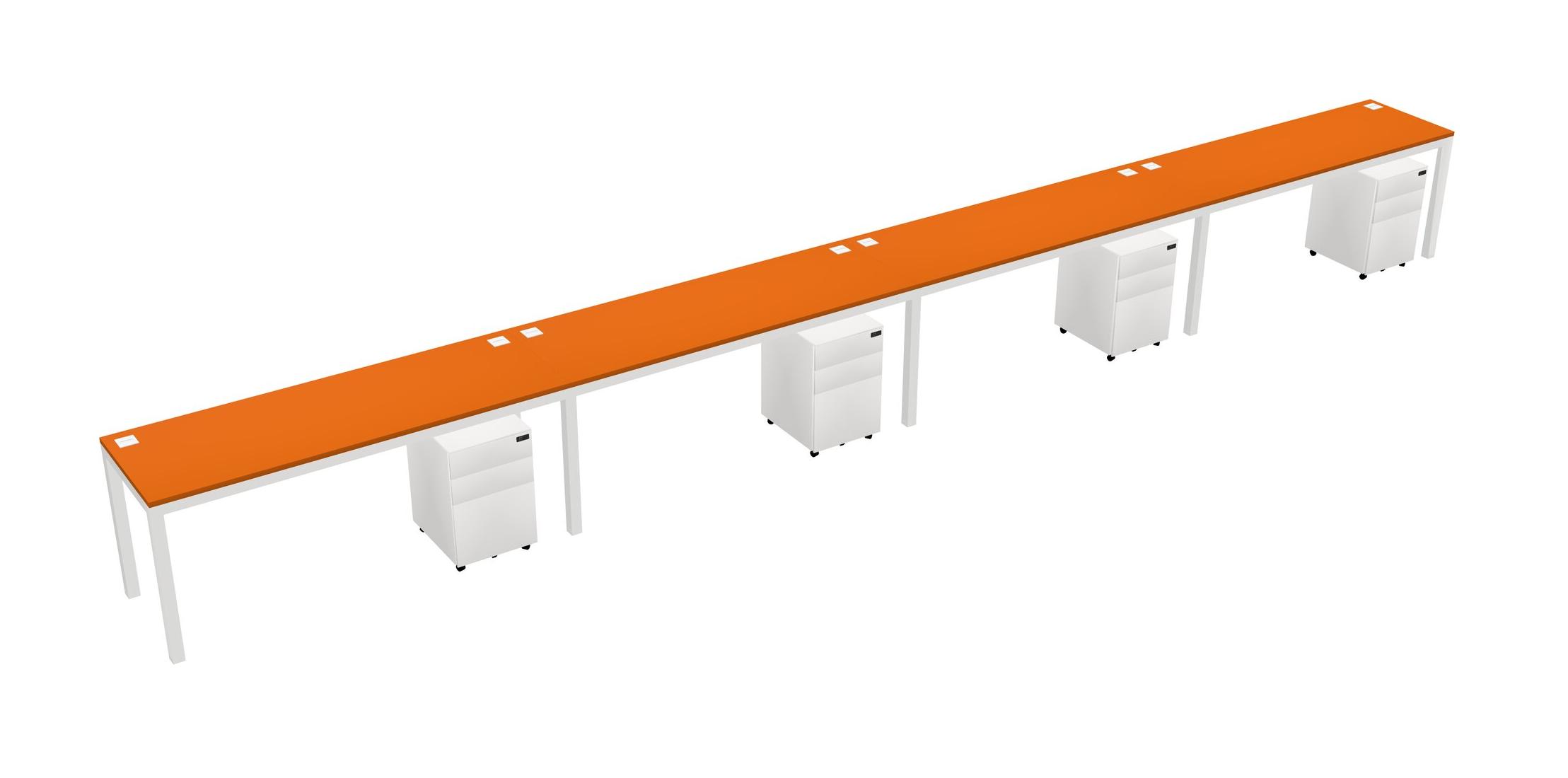 Orange Rectangular Office Desk With Metal Mobile Drawers For 4 Persons