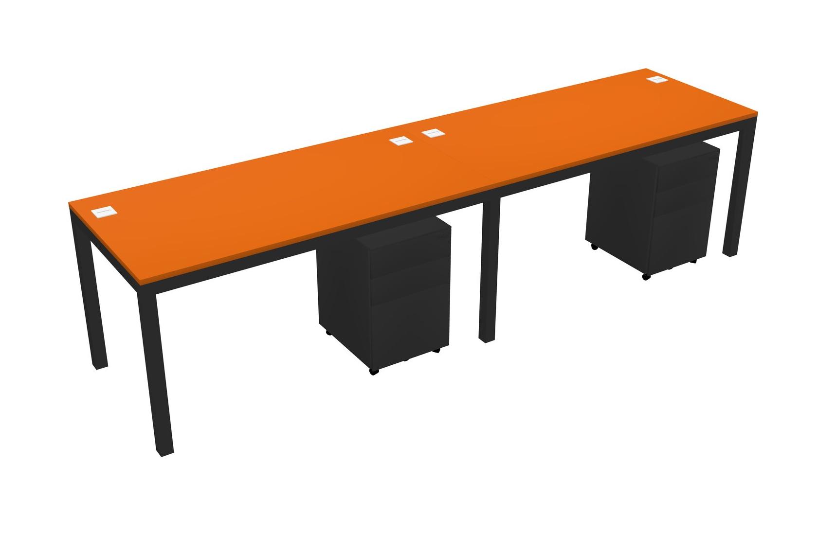 Orange Rectangular Office Desk With Metal Mobile Drawers For 2 Persons
