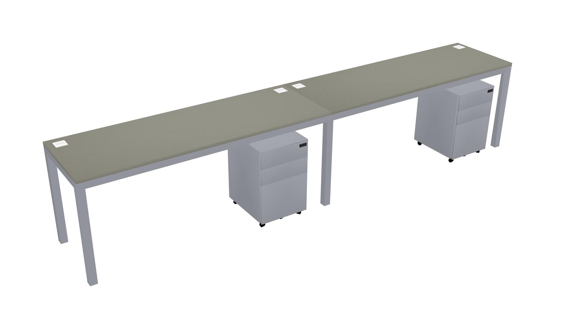 Grey Shadows Rectangular Office Desk With Metal Mobile Drawers For 2 Persons