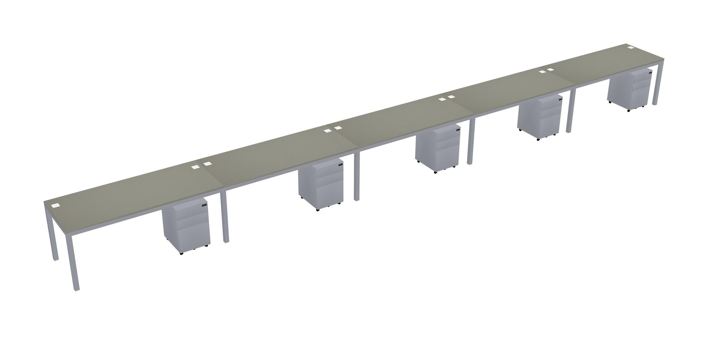Grey Shadows Rectangular Office Desk With Metal Mobile Drawers For 5 Persons