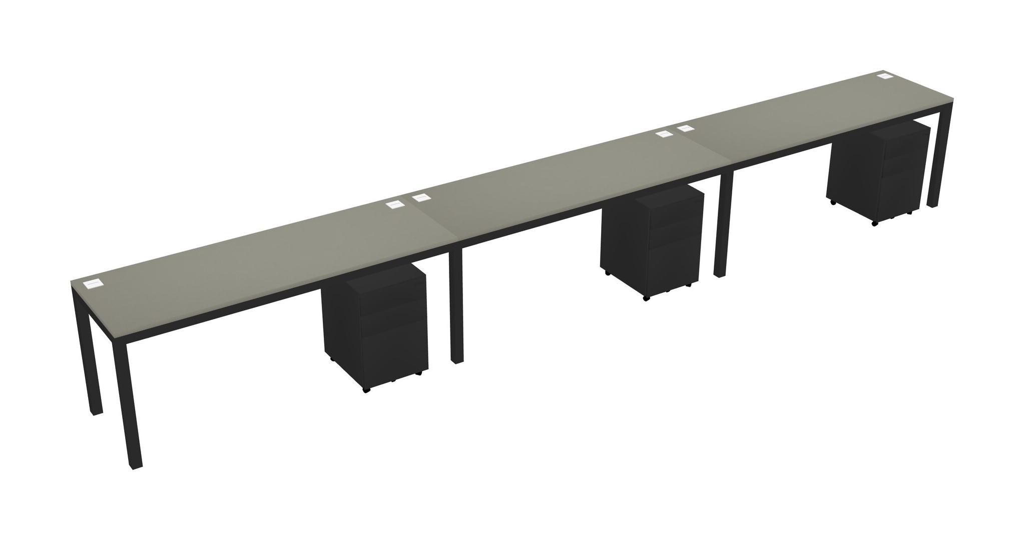 Grey Shadows Rectangular Office Desk With Metal Mobile Drawers For 3 Persons