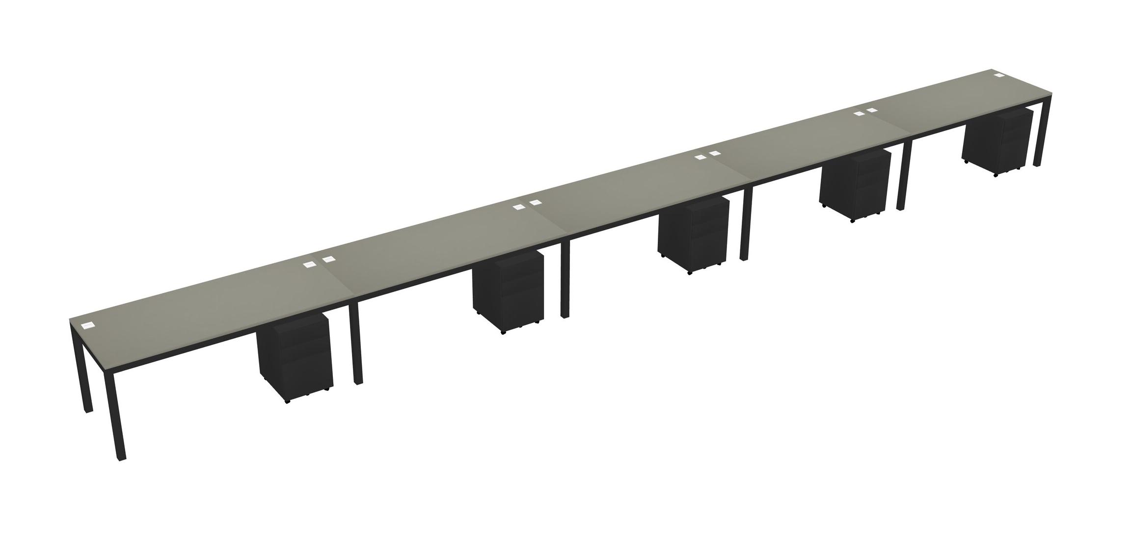Grey Shadows Rectangular Office Desk With Metal Mobile Drawers For 5 Persons