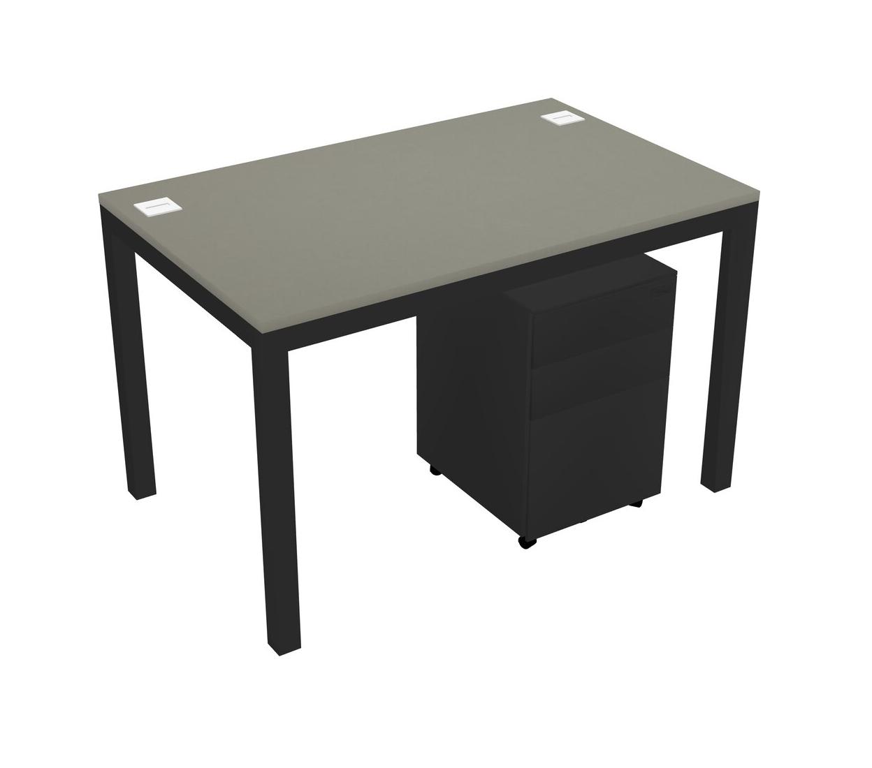 Grey Shadows Rectangular Office Desk With Metal Mobile Drawers For 1 Persons
