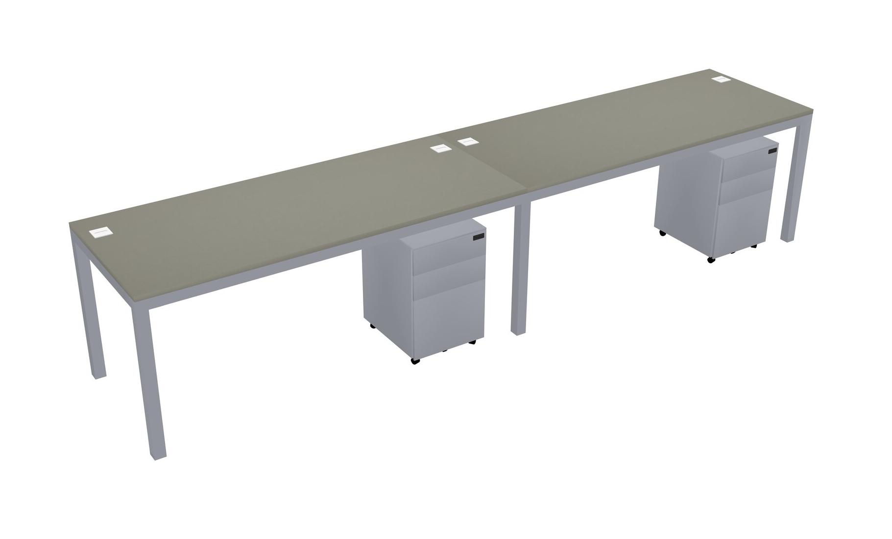 Grey Shadows Rectangular Office Desk With Metal Mobile Drawers For 2 Persons