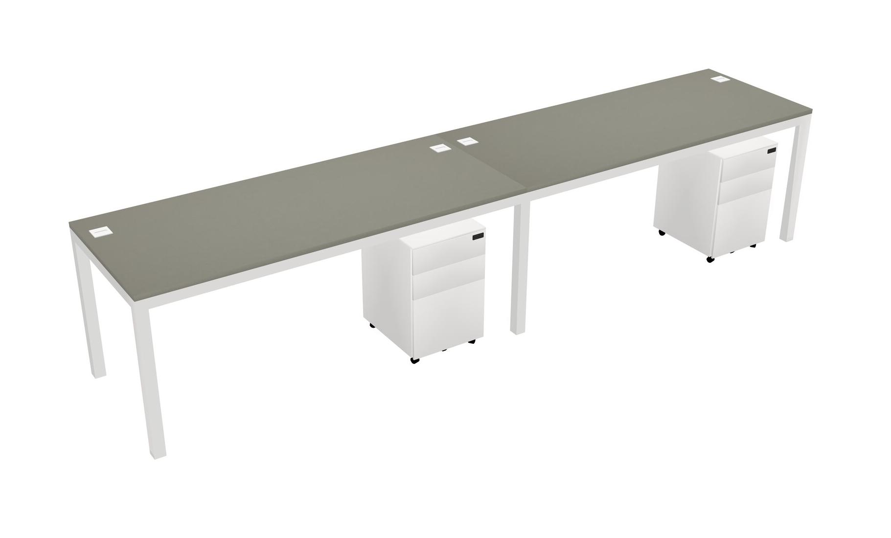 Grey Shadows Rectangular Office Desk With Metal Mobile Drawers For 2 Persons