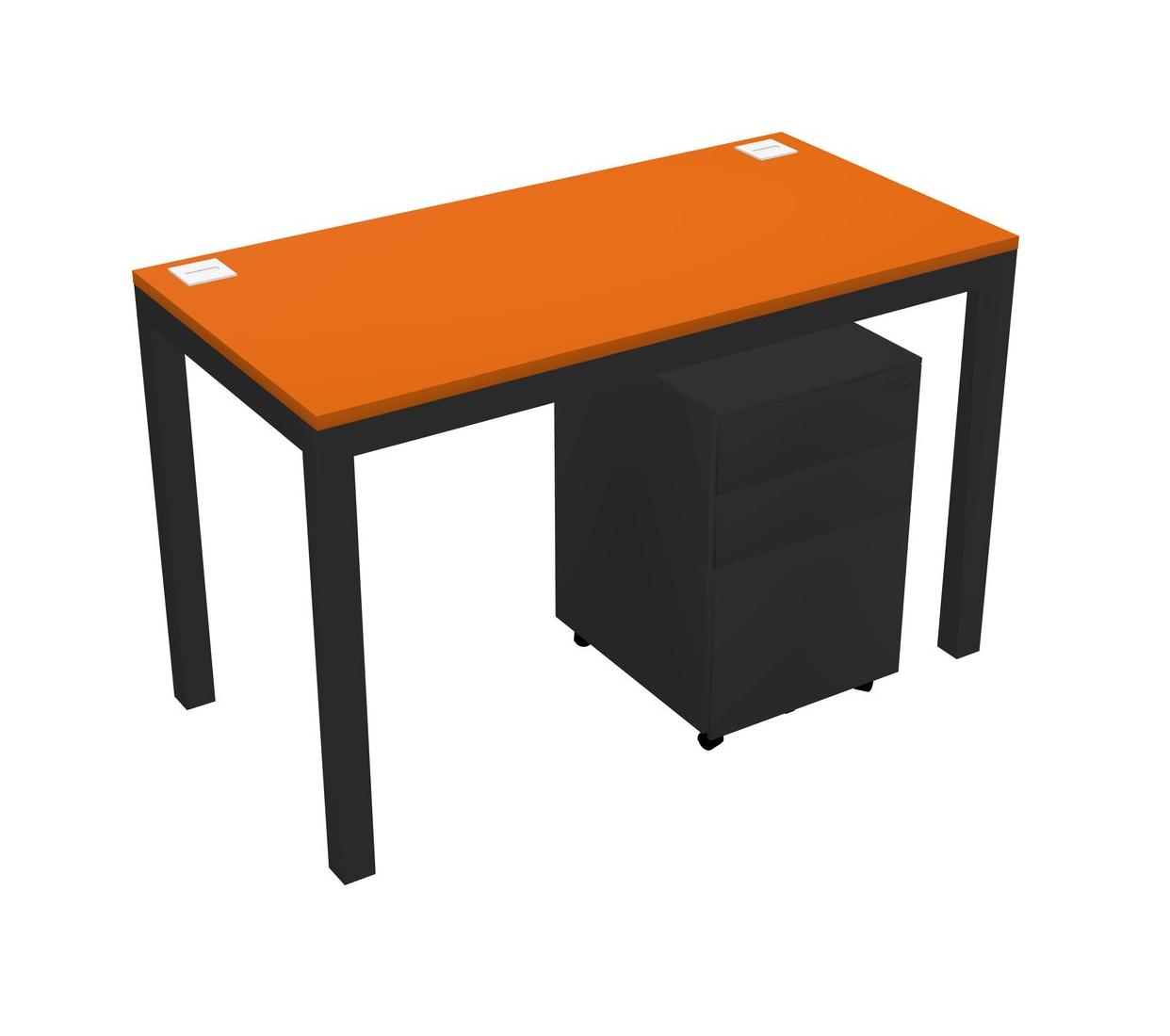 Orange Rectangular Office Desk With Metal Mobile Drawers For 1 Persons