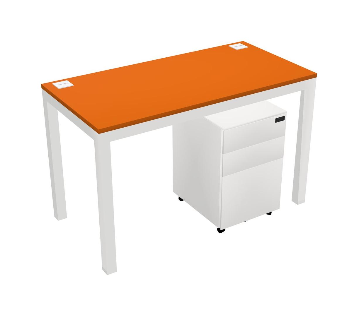 Orange Rectangular Office Desk With Metal Mobile Drawers For 1 Persons