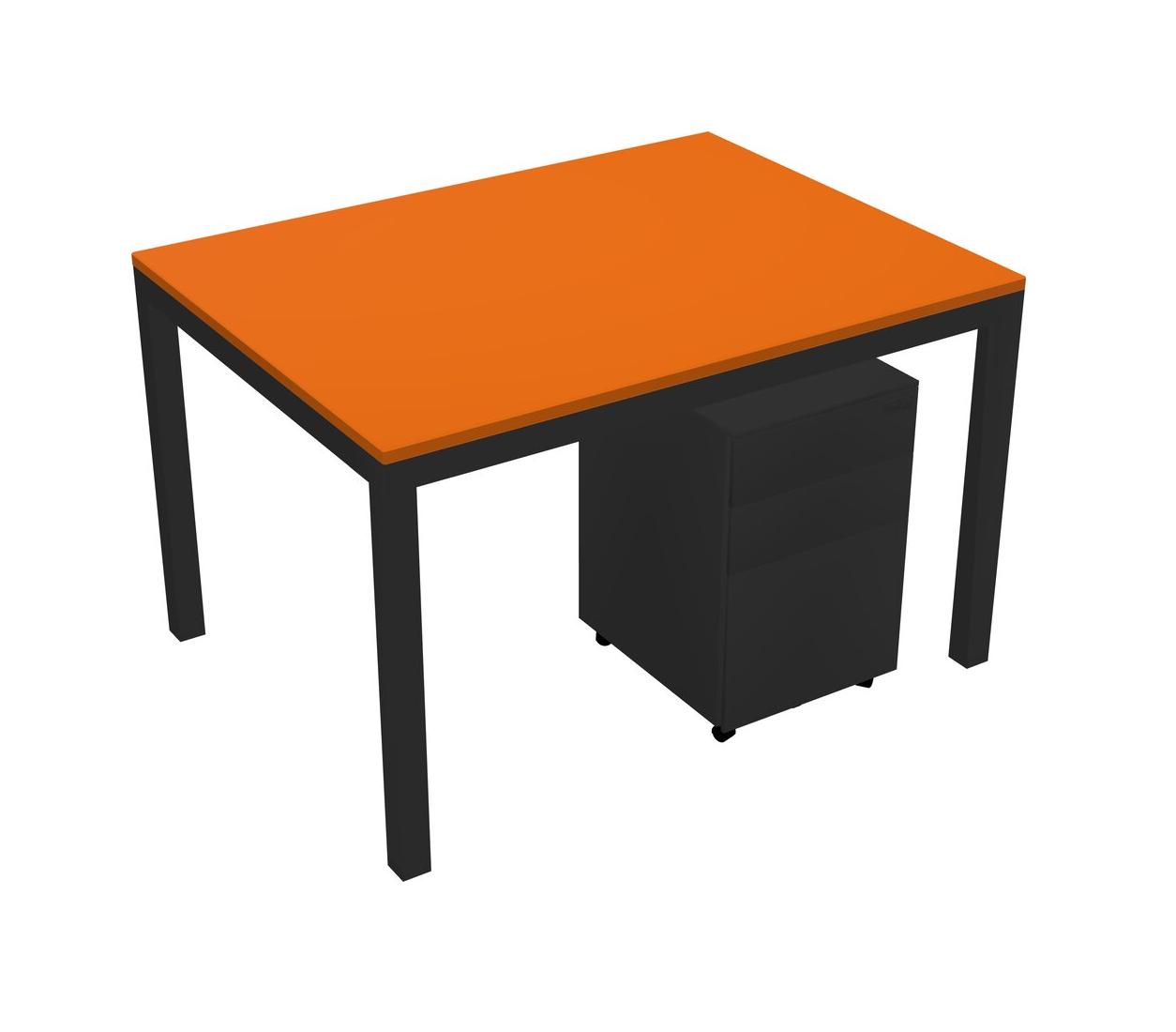 Orange Rectangular Office Desk With Metal Mobile Drawers For 1 Persons