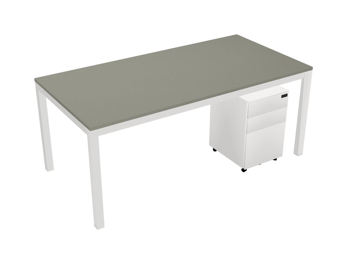 Grey Shadows Rectangular Office Desk With Metal Mobile Drawers For 1 Persons