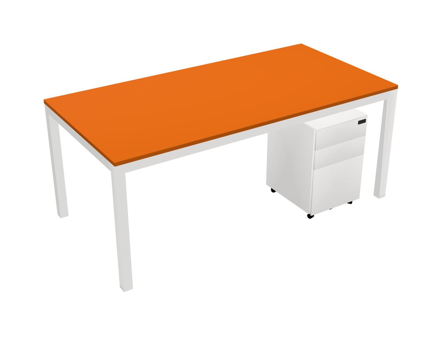 Orange Rectangular Office Desk With Metal Mobile Drawers For 1 Persons