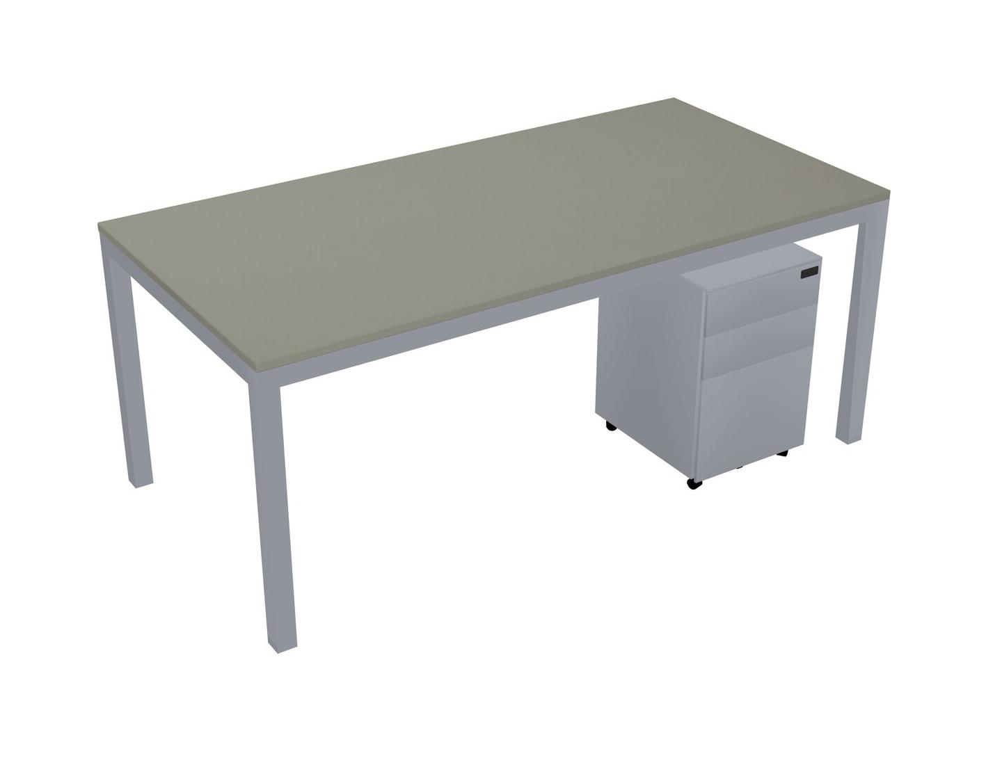 Grey Shadows Rectangular Office Desk With Metal Mobile Drawers For 1 Persons