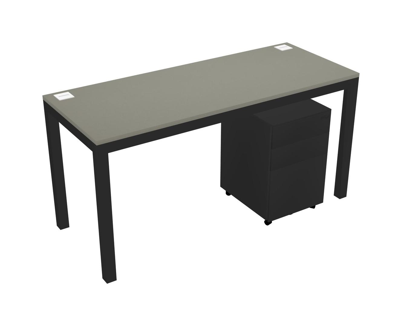 Grey Shadows Rectangular Office Desk With Metal Mobile Drawers For 1 Persons