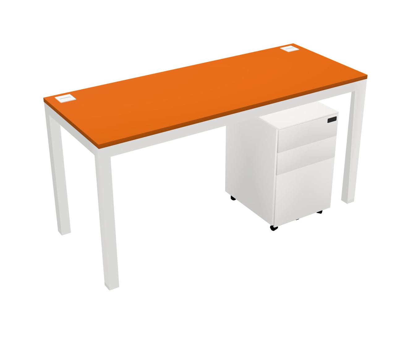 Orange Rectangular Office Desk With Metal Mobile Drawers For 1 Persons
