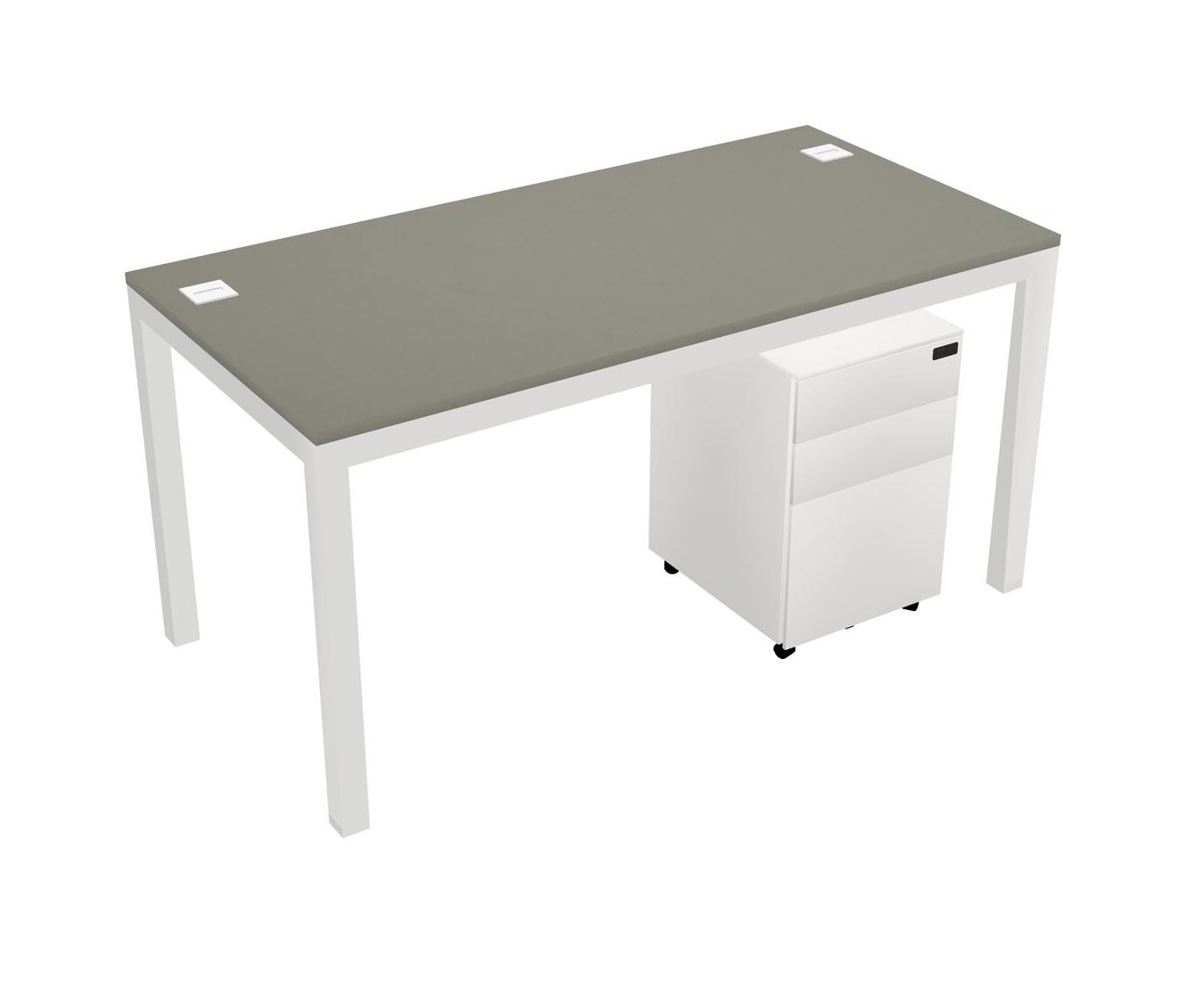 Grey Shadows Rectangular Office Desk With Metal Mobile Drawers For 1 Persons