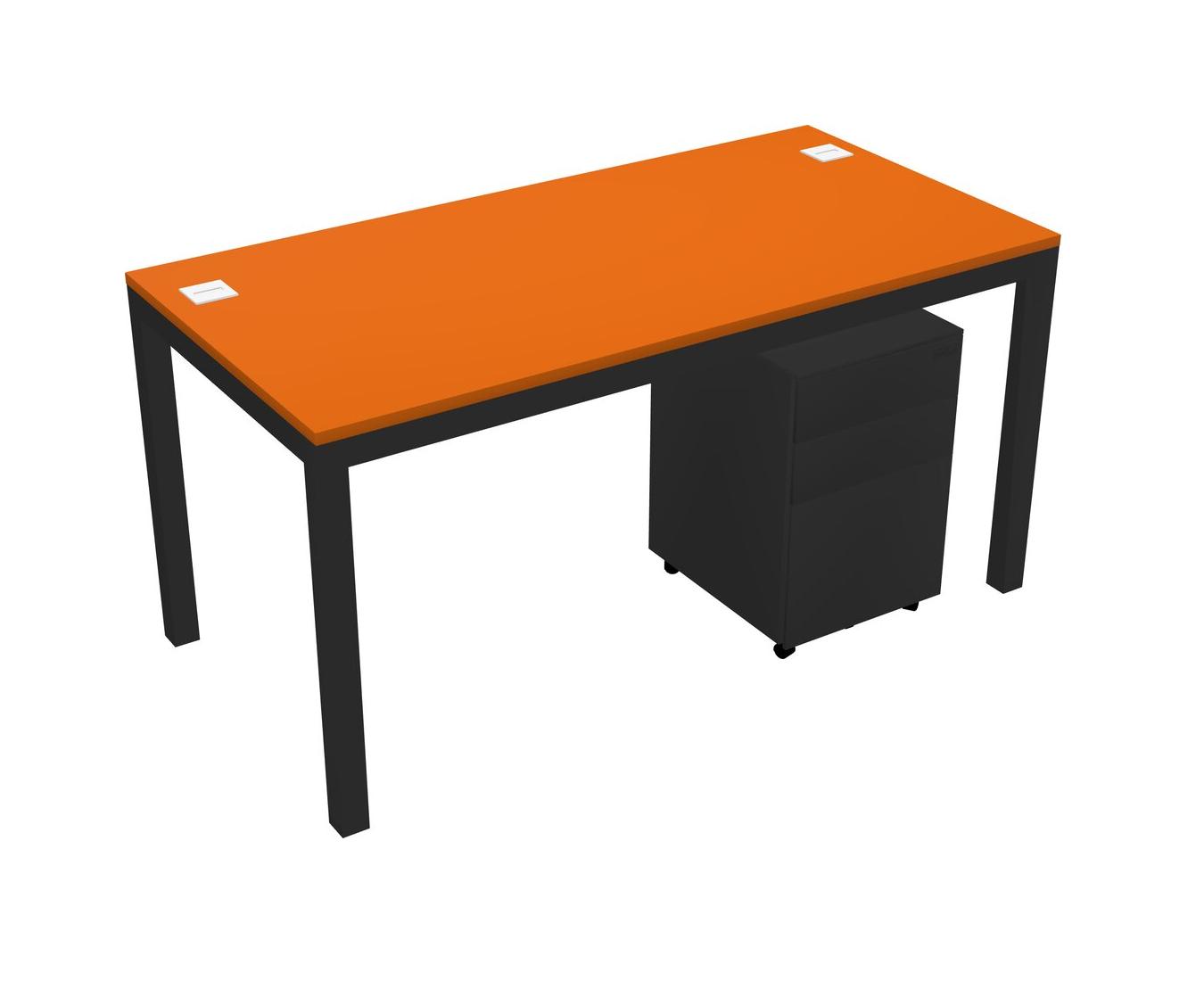 Orange Rectangular Office Desk With Metal Mobile Drawers For 1 Persons
