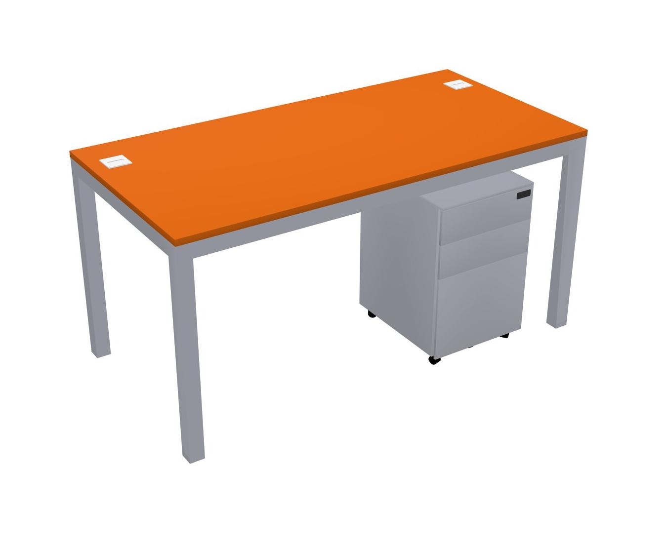 Orange Rectangular Office Desk With Metal Mobile Drawers For 1 Persons