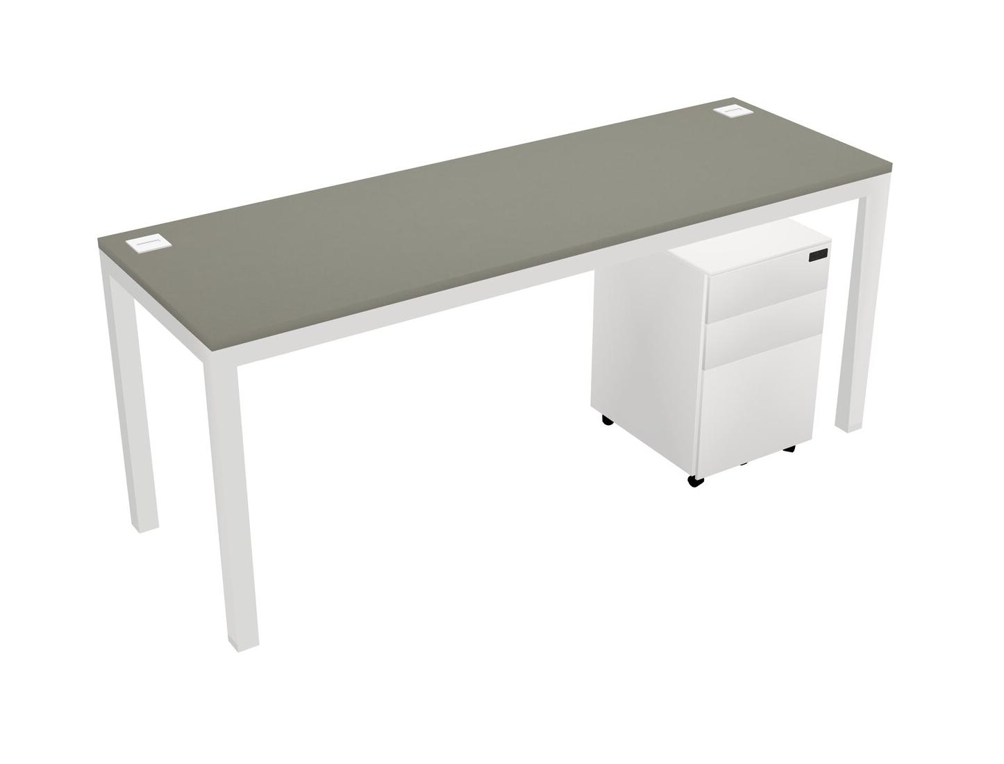 Grey Shadows Rectangular Office Desk With Metal Mobile Drawers For 1 Persons